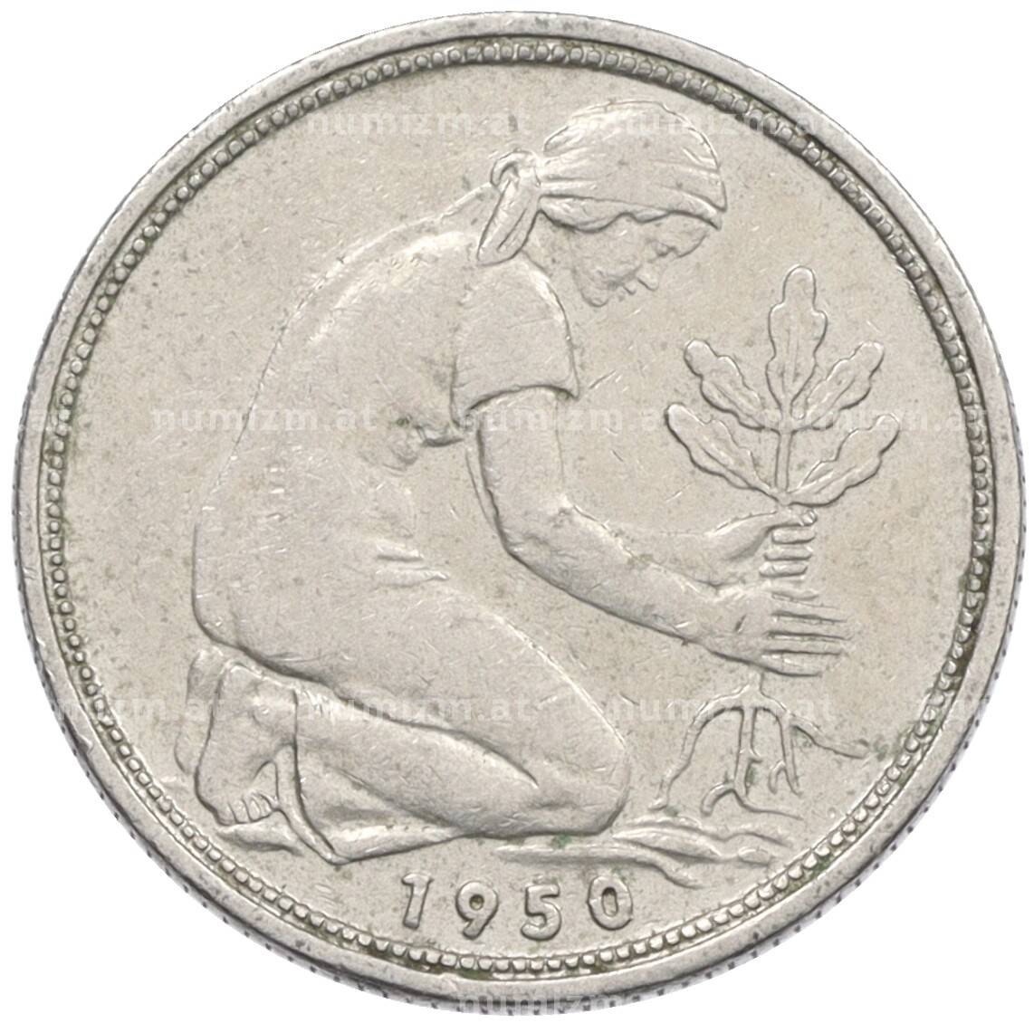 Монета 50 пфеннигов 1950 года D Западная Германия (ФРГ) [Артикул: K10-6648]
