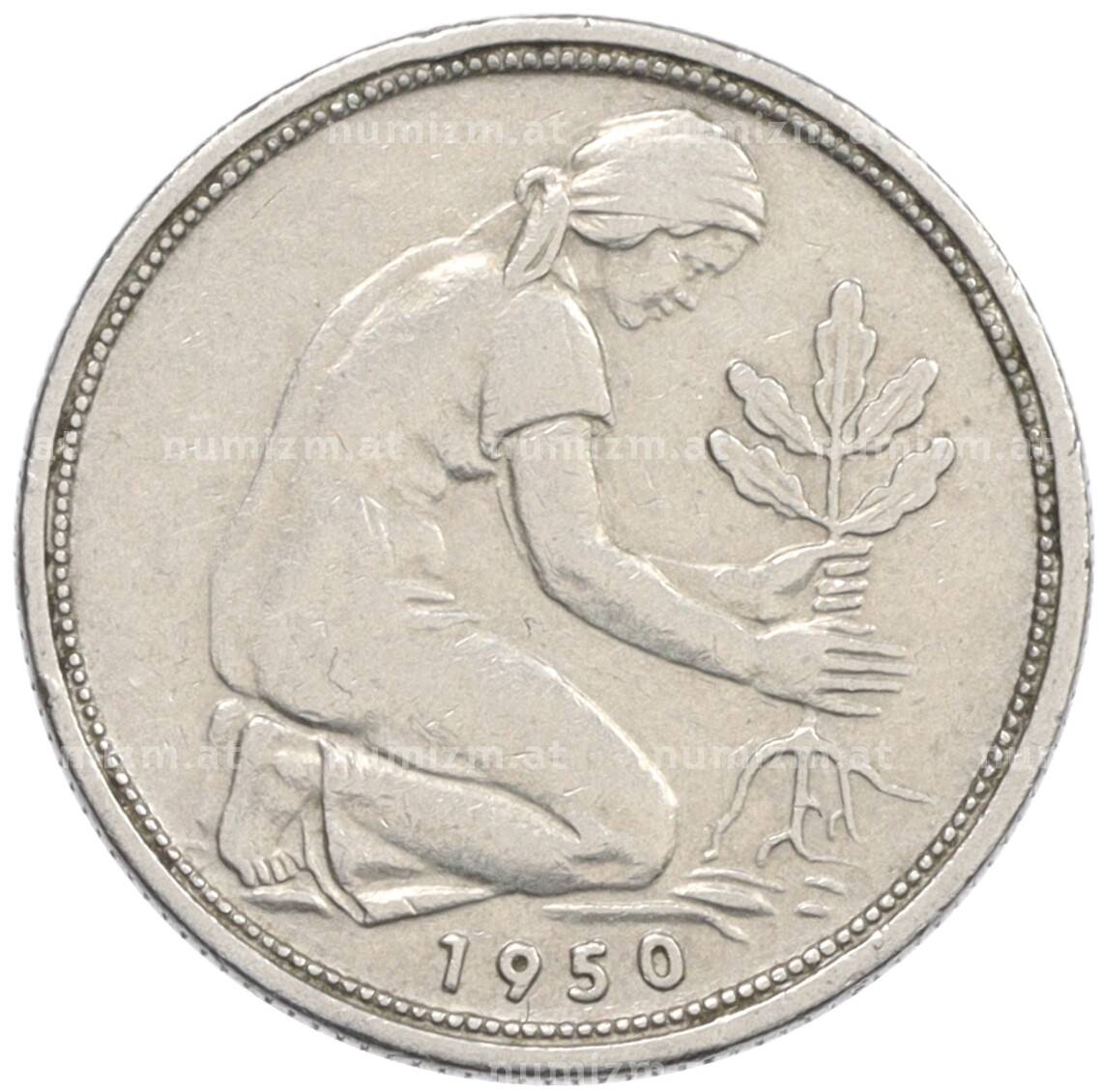 Монета 50 пфеннигов 1950 года D Западная Германия (ФРГ) [Артикул: K10-6653]