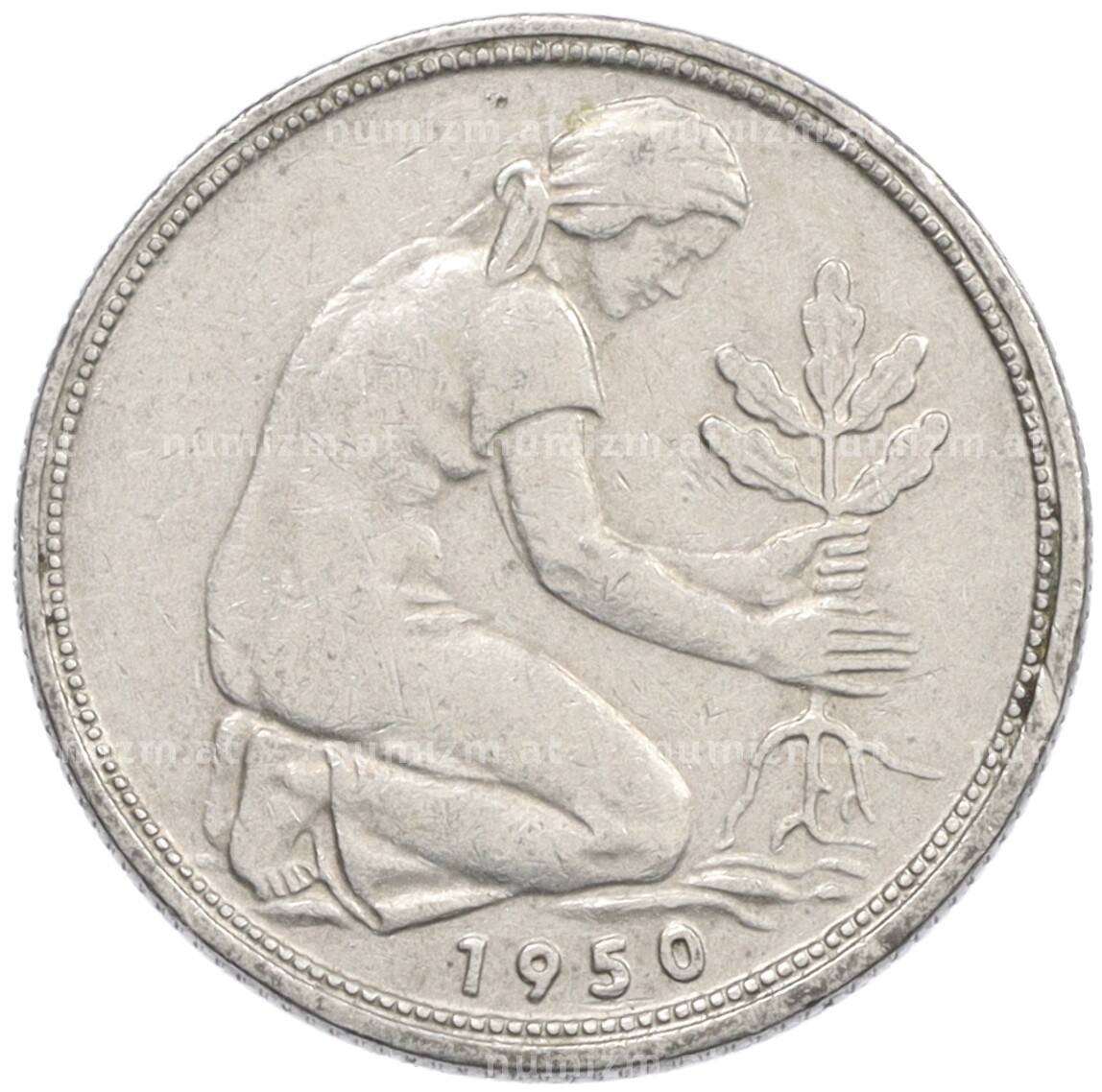 Монета 50 пфеннигов 1950 года J Западная Германия (ФРГ) [Артикул: K10-6751]