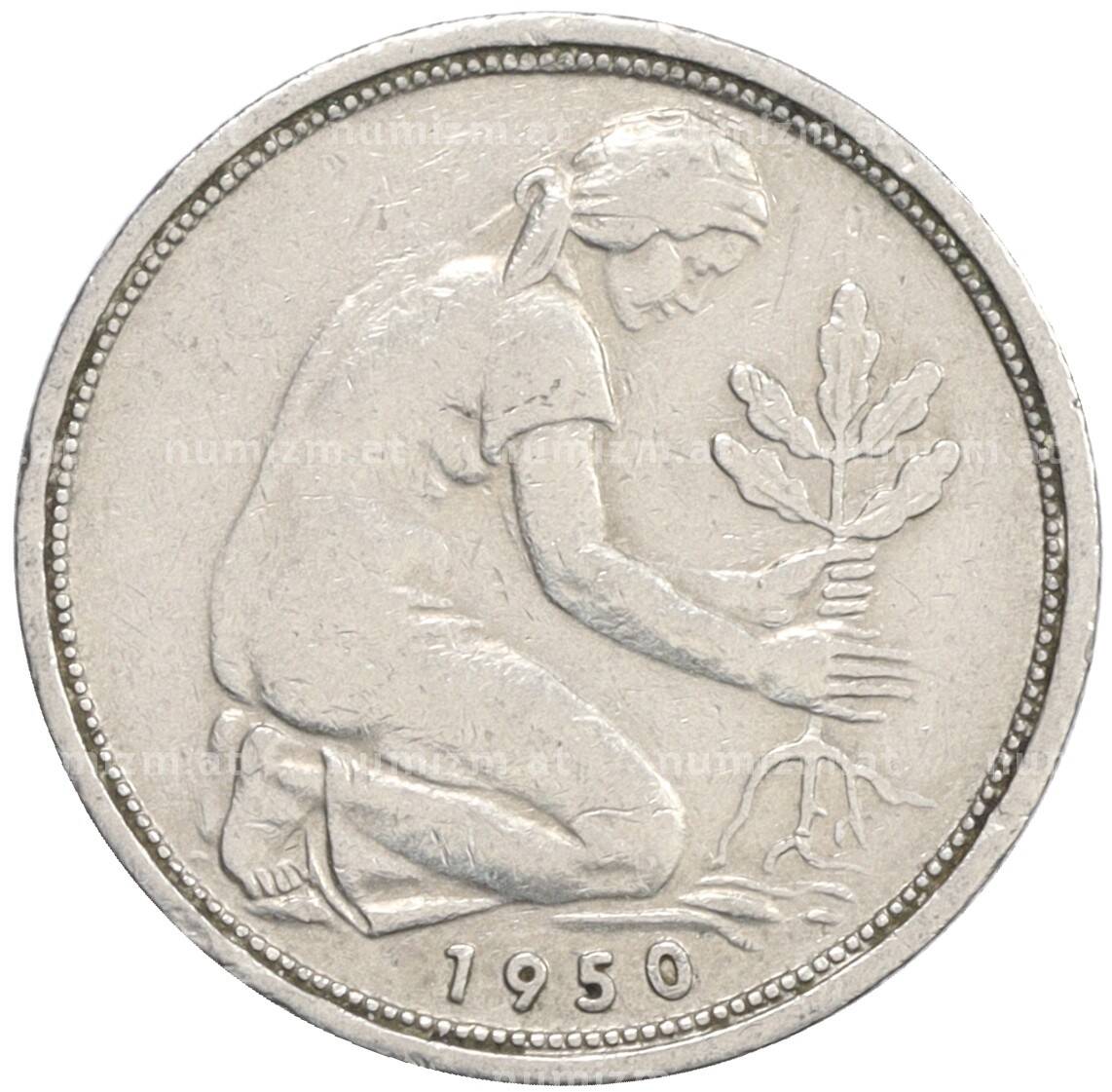 Монета 50 пфеннигов 1950 года D Западная Германия (ФРГ) [Артикул: K10-6755]