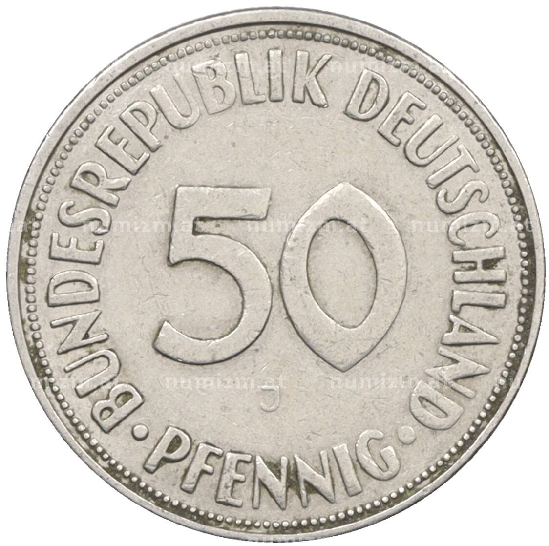 Купить 50 пфеннигов 1950 года J Западная Германия (ФРГ) по привлекательной цене можно в нашем интернет-магазине — Вам достаточно оформить заказ на сайте. Все монеты, представленные в каталоге, находятся в наличии на нашем складе.