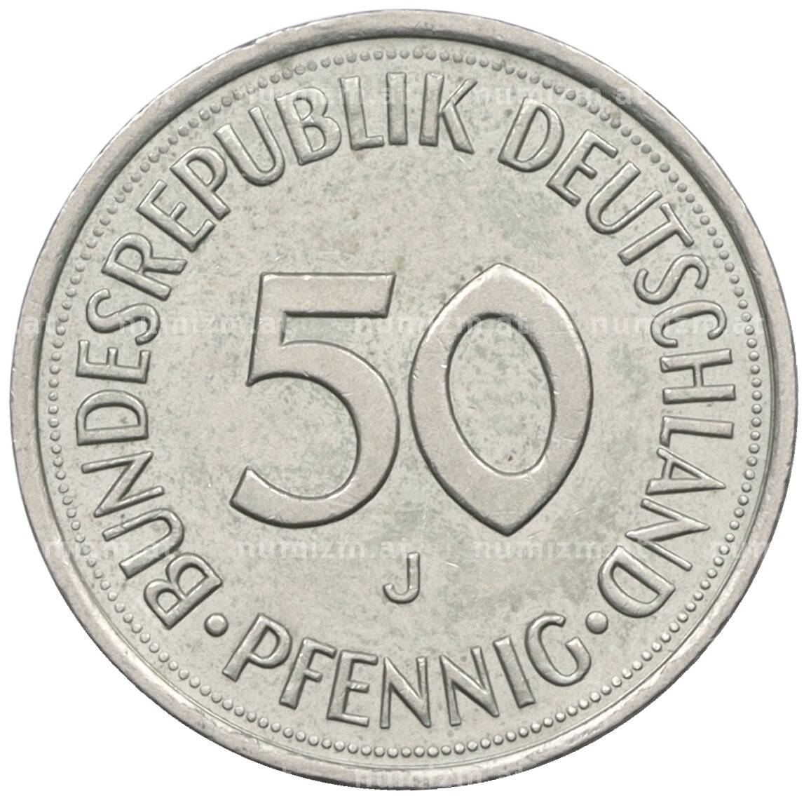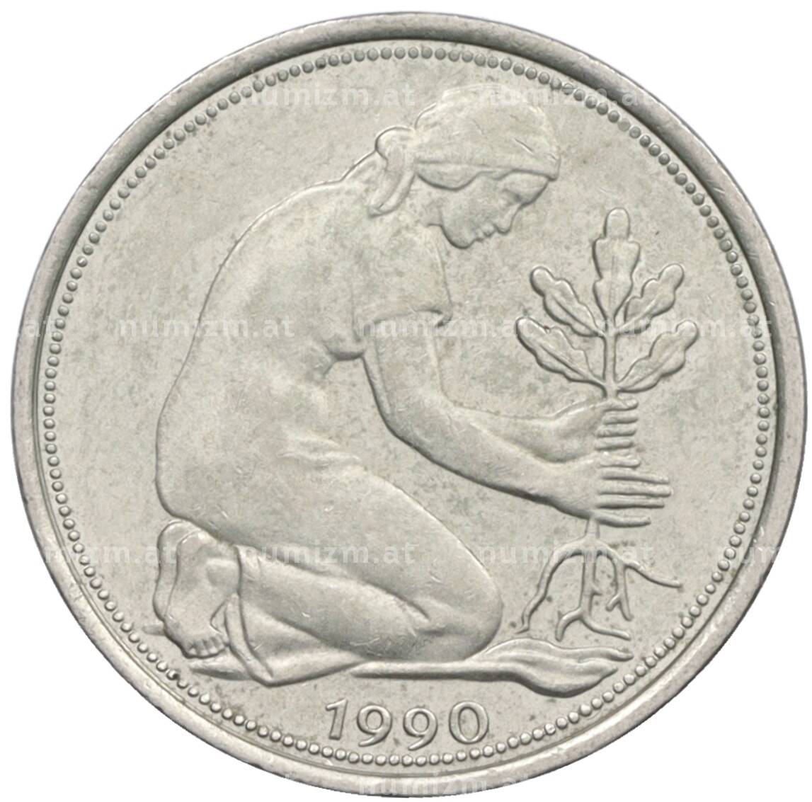 Монета 50 пфеннигов 1990 года J Западная Германия (ФРГ) (Артикул: K10-7010): подробные характеристики, качественные фотографии в высоком разрешении, низкая цена.