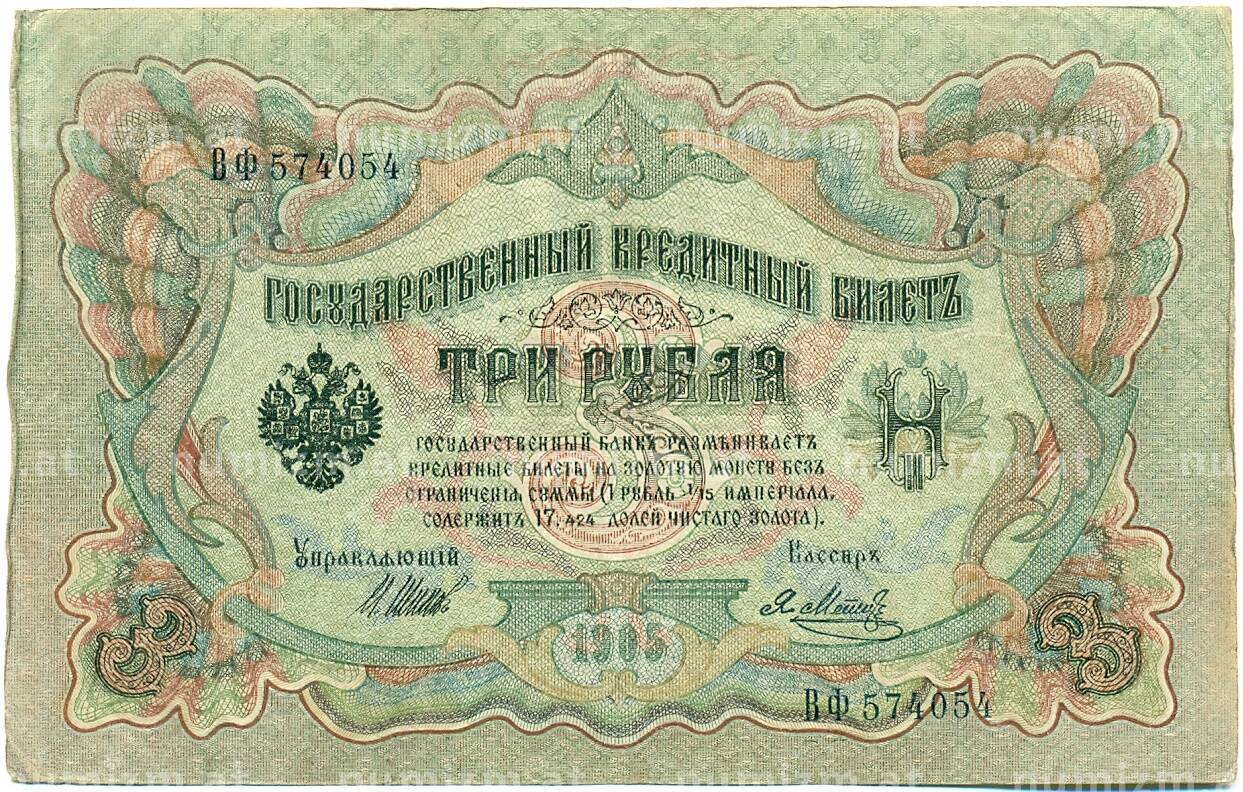 20.01.2025Интернет магазин «Нумизмат» предлагает приобрести 3 рубля 1905 года Шипов / Метц.