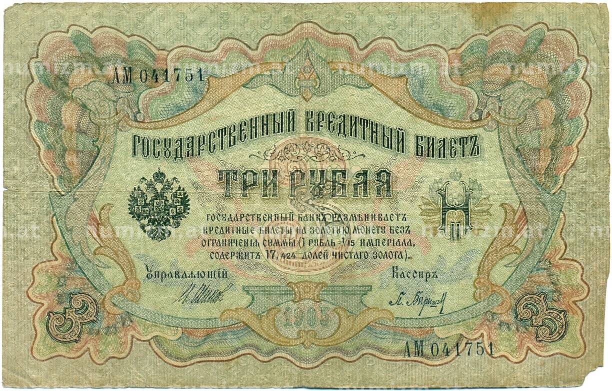 20.01.2025Интернет магазин «Нумизмат» предлагает приобрести 3 рубля 1905 года Шипов / Барышев.
