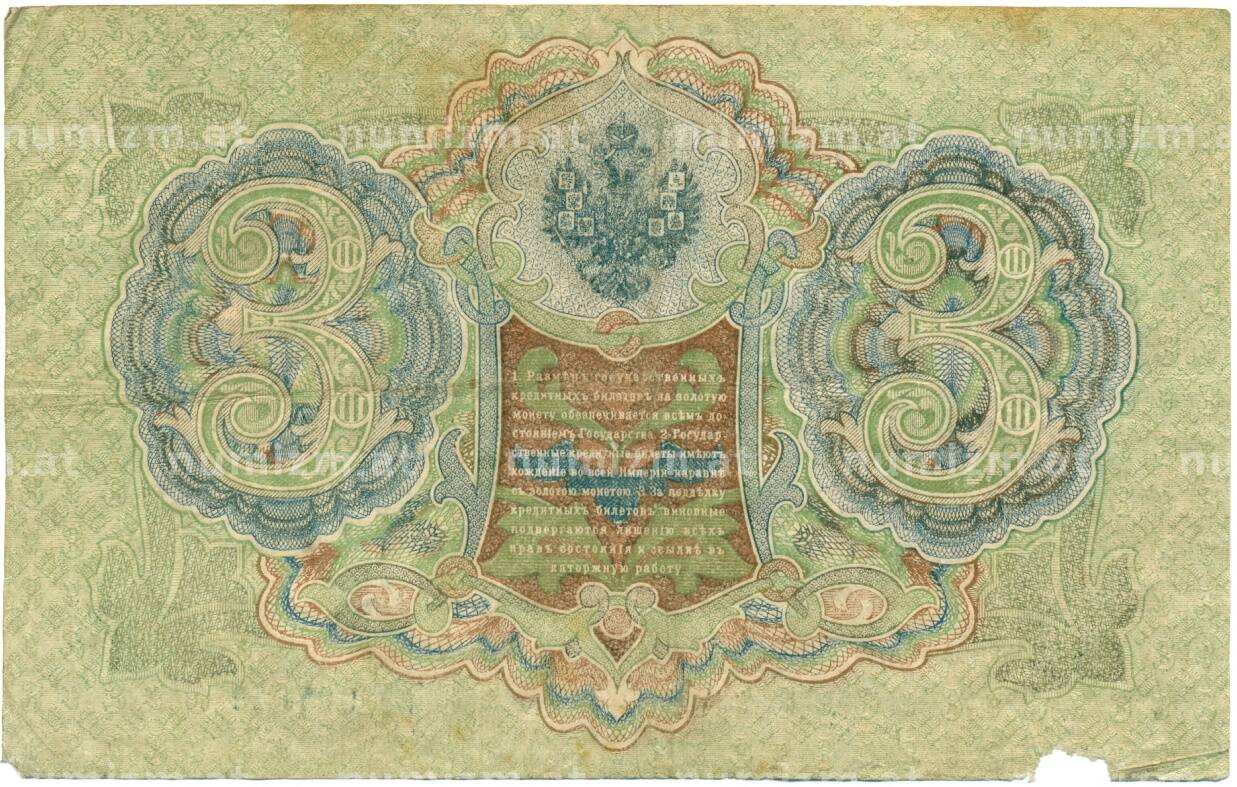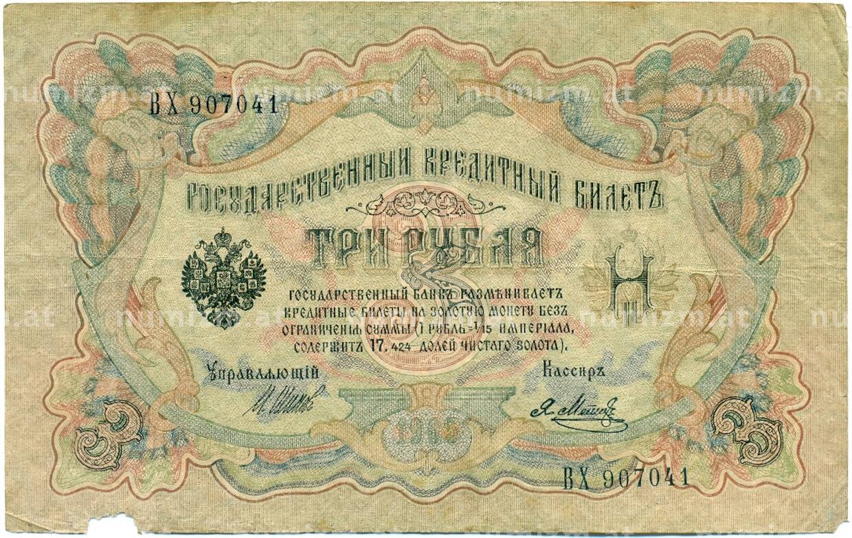 Банкнота 3 рубля 1905 года Шипов / Метц (Артикул: K10-7165): подробные характеристики, качественные фотографии в высоком разрешении, низкая цена.