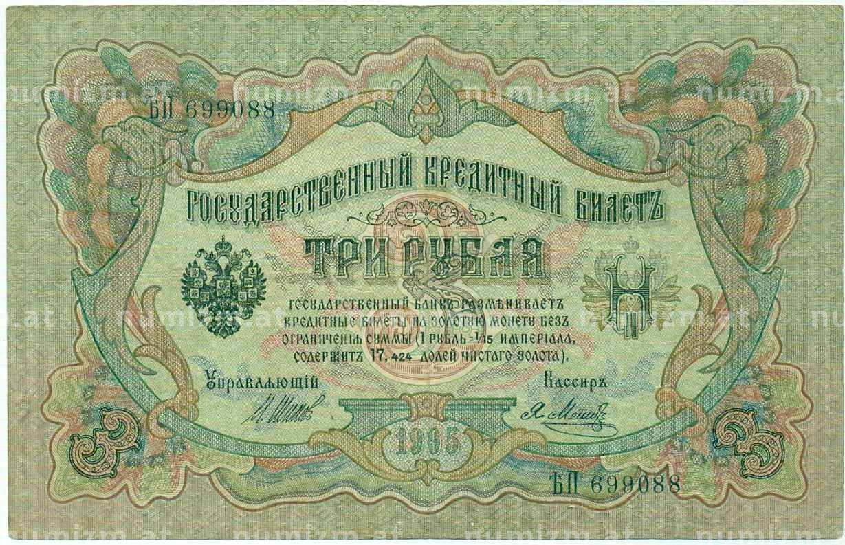 20.01.2025Интернет магазин «Нумизмат» предлагает приобрести 3 рубля 1905 года Шипов / Метц.