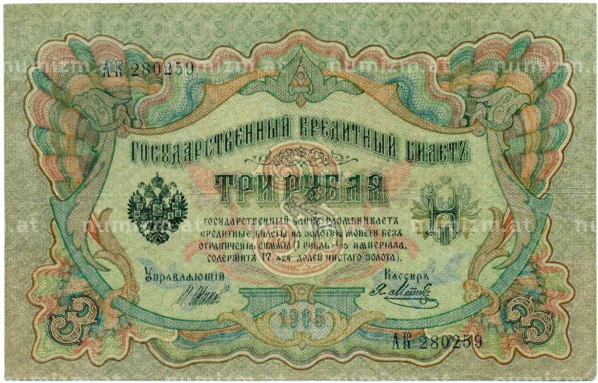 20.01.2025Интернет магазин «Нумизмат» предлагает приобрести 3 рубля 1905 года Шипов / Метц.