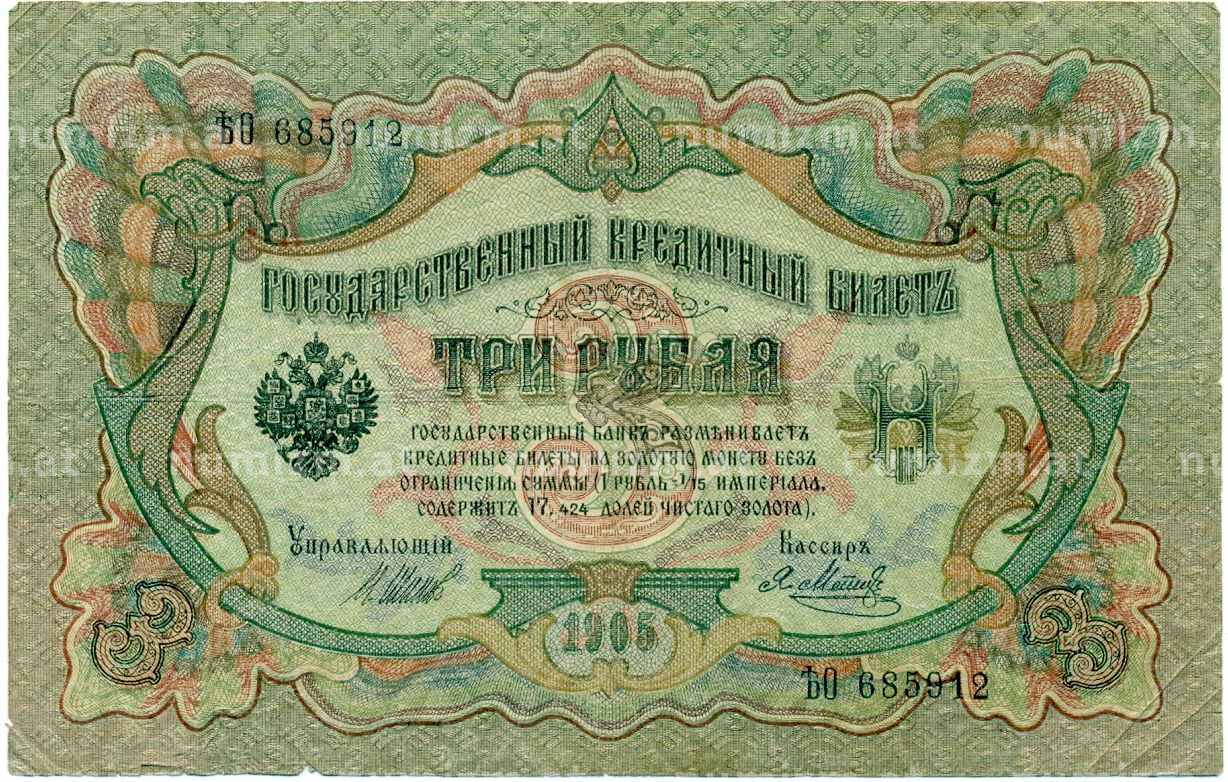 20.01.2025Интернет магазин «Нумизмат» предлагает приобрести 3 рубля 1905 года Шипов / Метц.
