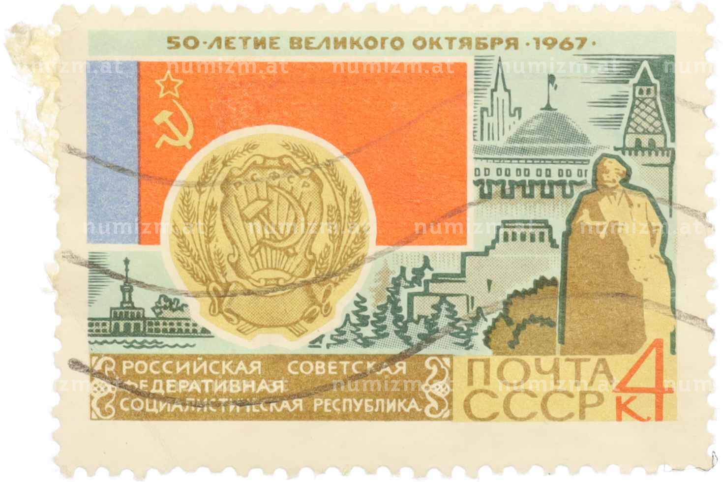 Купить Почтовая марка 4 копейки 1967 года «50 лет Октябрьской революции — РСФСР» по привлекательной цене можно в нашем интернет-магазине — Вам достаточно оформить заказ на сайте. Все монеты, представленные в каталоге, находятся в наличии на нашем складе.