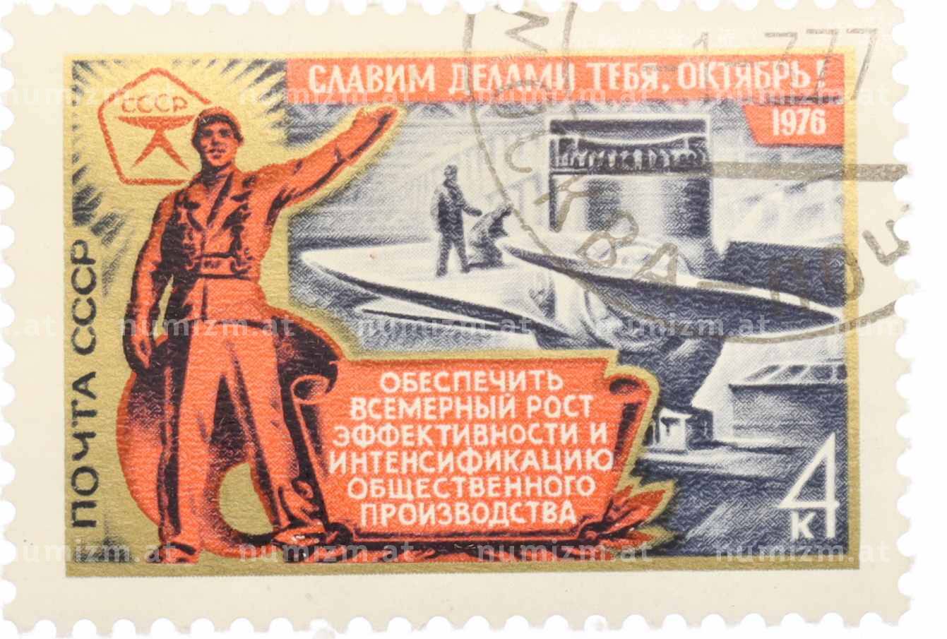 Купить Почтовая марка 4 копейки 1976 года «59 лет Октябрьской революции — Тяжелая промышленность» по привлекательной цене можно в нашем интернет-магазине — Вам достаточно оформить заказ на сайте. Все монеты, представленные в каталоге, находятся в наличии на нашем складе.