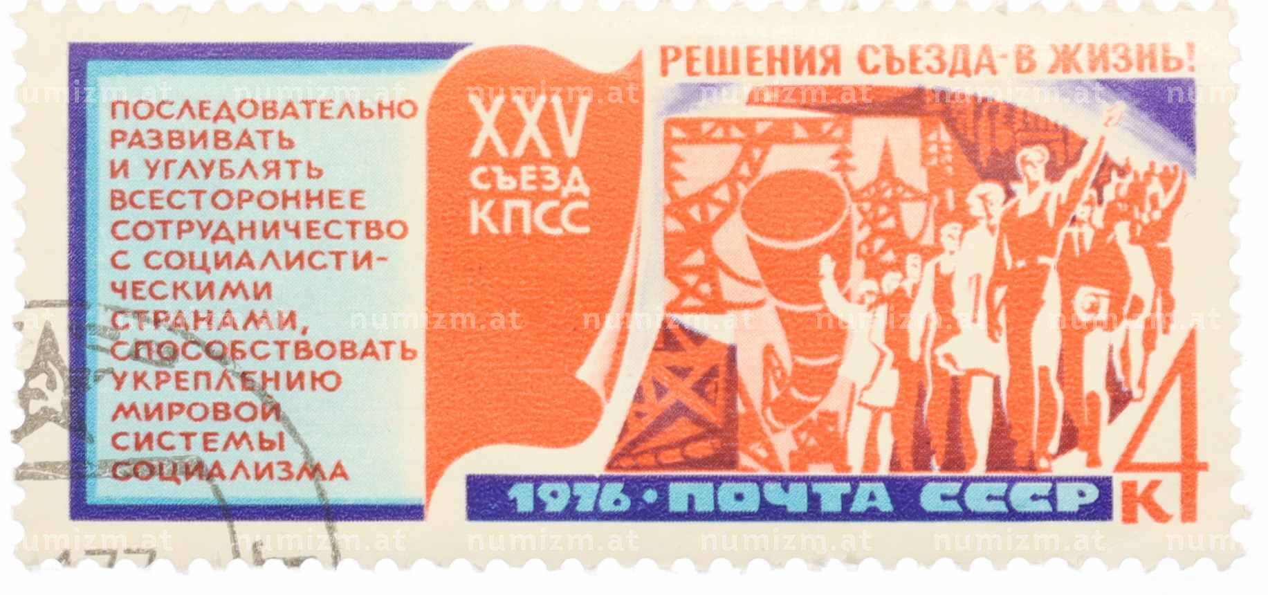 Купить Почтовая марка 4 копейки 1976 года «Решения XXV съезда КПСС — Сотрудничество стран» по привлекательной цене можно в нашем интернет-магазине — Вам достаточно оформить заказ на сайте. Все монеты, представленные в каталоге, находятся в наличии на нашем складе.