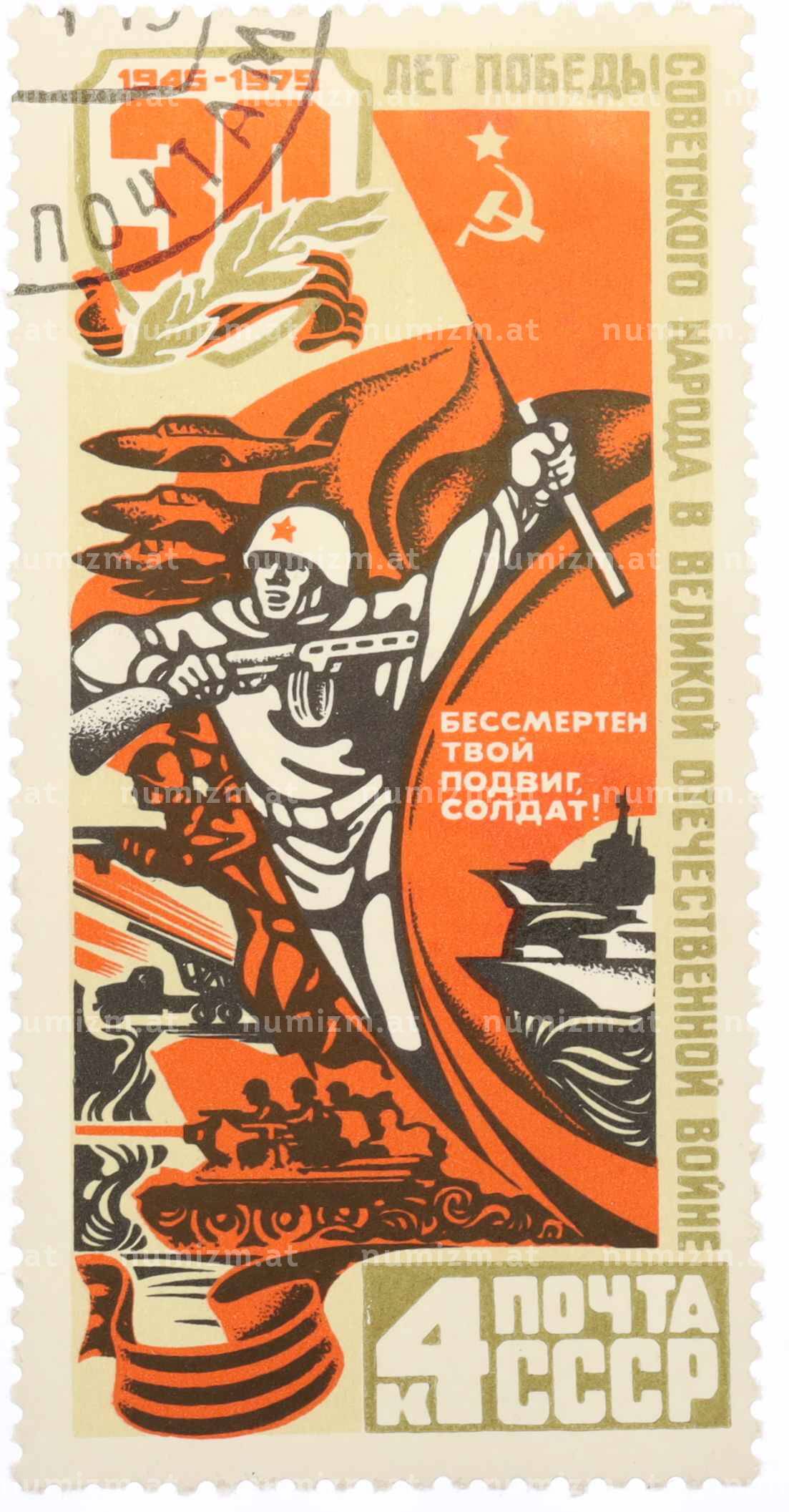 Купить Почтовая марка 4 копейки 1975 года «30 лет Победы — Героизм» по привлекательной цене можно в нашем интернет-магазине — Вам достаточно оформить заказ на сайте. Все монеты, представленные в каталоге, находятся в наличии на нашем складе.