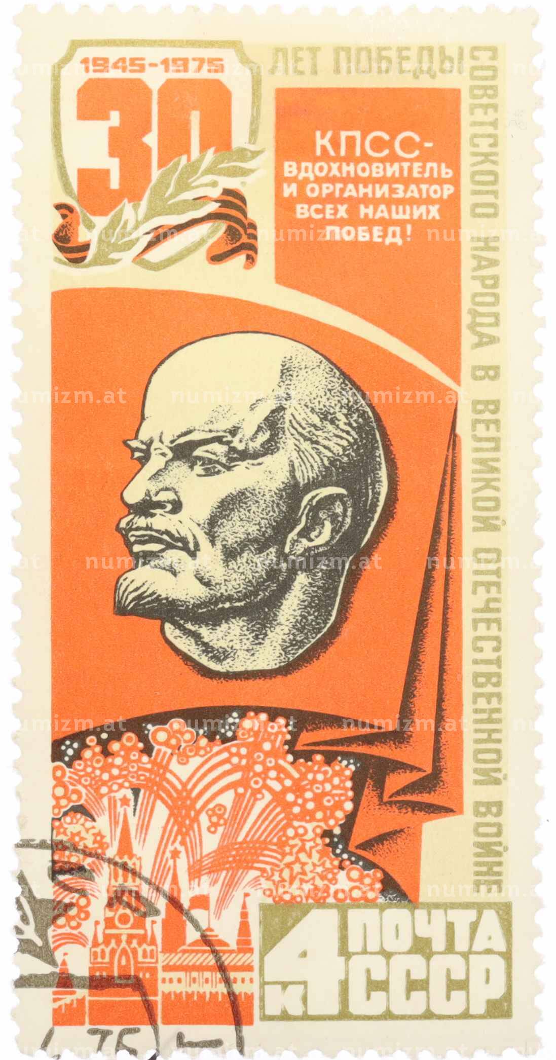 Купить Почтовая марка 4 копейки 1975 года «30 лет Победы — Ленин» по привлекательной цене можно в нашем интернет-магазине — Вам достаточно оформить заказ на сайте. Все монеты, представленные в каталоге, находятся в наличии на нашем складе.