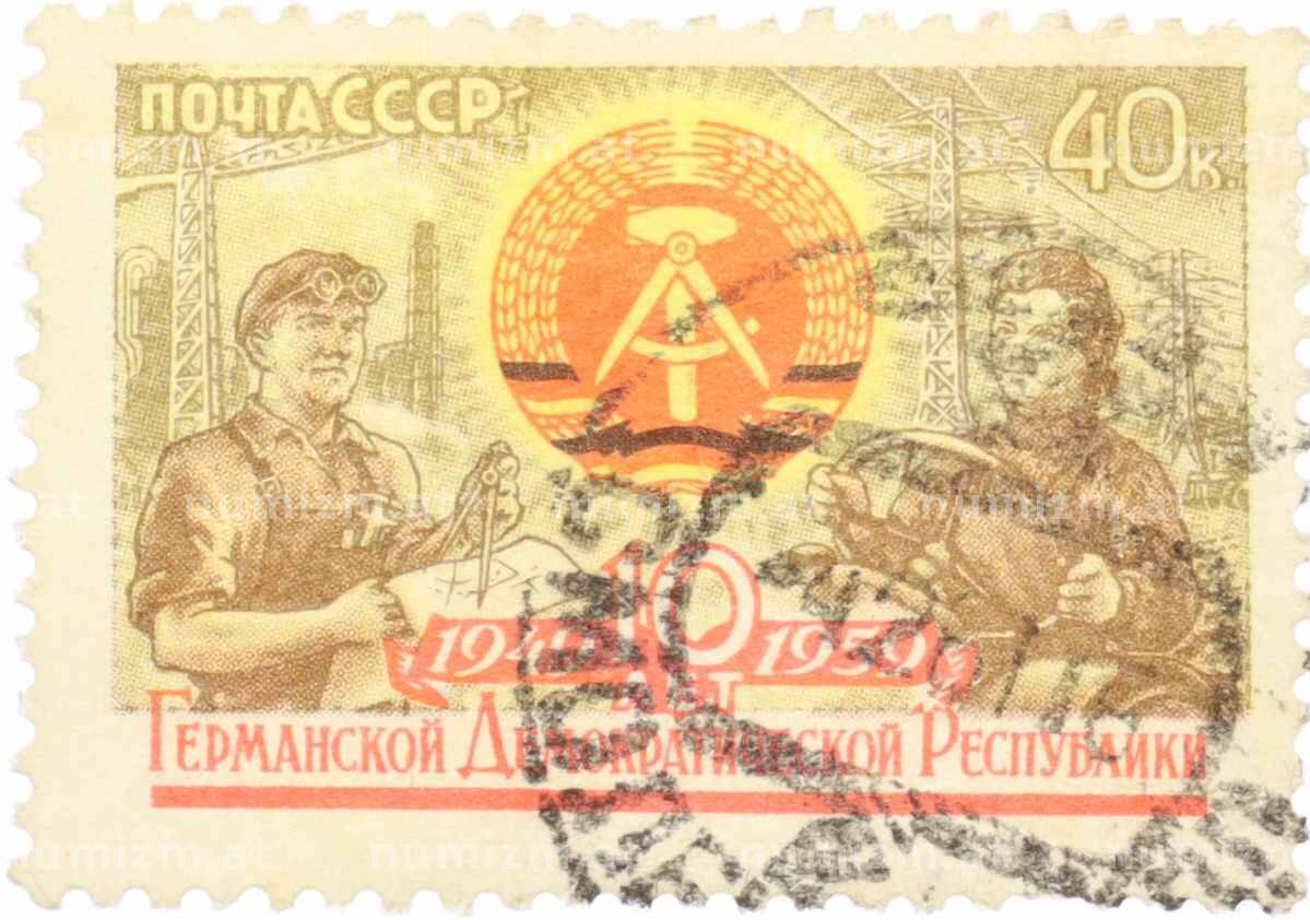 Купить Почтовая марка 40 копеек 1959 года «10 лет Германской Демократической Республике — Герб» по привлекательной цене можно в нашем интернет-магазине — Вам достаточно оформить заказ на сайте. Все монеты, представленные в каталоге, находятся в наличии на нашем складе.