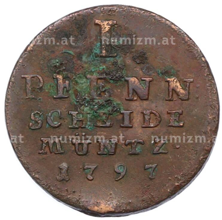 Купить 1 пфенниг 1797 года Брауншвейг-Люнебург по привлекательной цене можно в нашем интернет-магазине — Вам достаточно оформить заказ на сайте. Все монеты, представленные в каталоге, находятся в наличии на нашем складе.