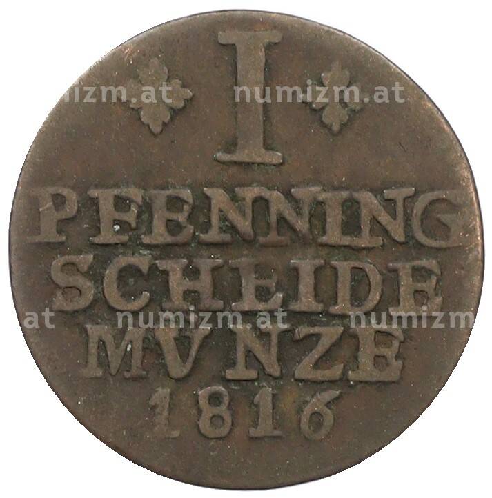 Купить 1 пфенниг 1816 года Брауншвейг по привлекательной цене можно в нашем интернет-магазине — Вам достаточно оформить заказ на сайте. Все монеты, представленные в каталоге, находятся в наличии на нашем складе.