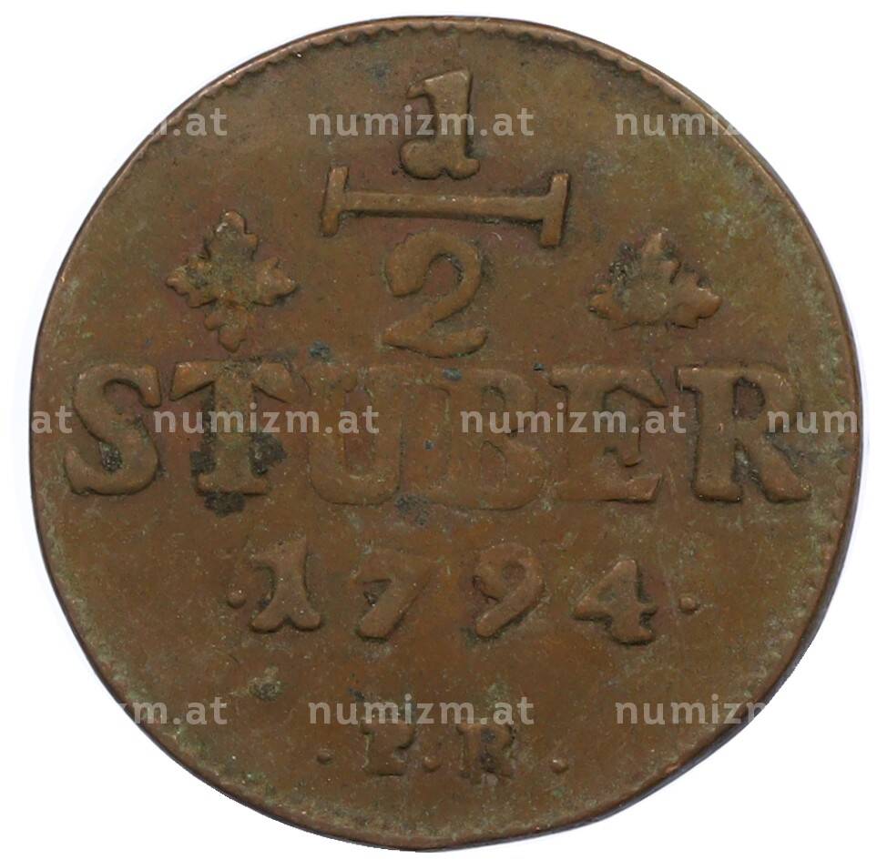 Купить 1/2 штюбера 1794 года Юлих-Берг по привлекательной цене можно в нашем интернет-магазине — Вам достаточно оформить заказ на сайте. Все монеты, представленные в каталоге, находятся в наличии на нашем складе.