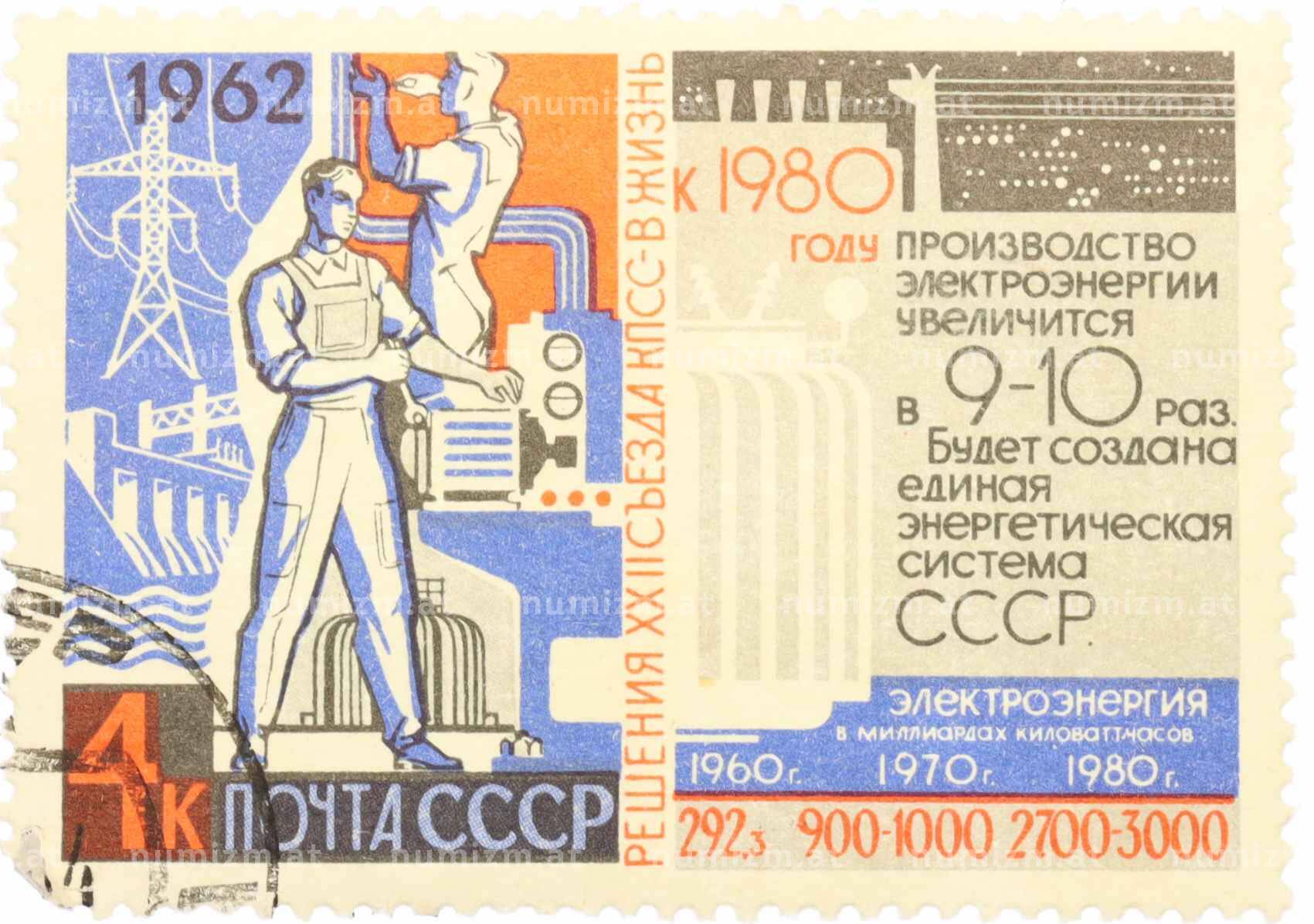 Купить Почтовая марка 4 копейки 1962 года «Решения XXII съезда КПСС — Электроэнергия» по привлекательной цене можно в нашем интернет-магазине — Вам достаточно оформить заказ на сайте. Все монеты, представленные в каталоге, находятся в наличии на нашем складе.