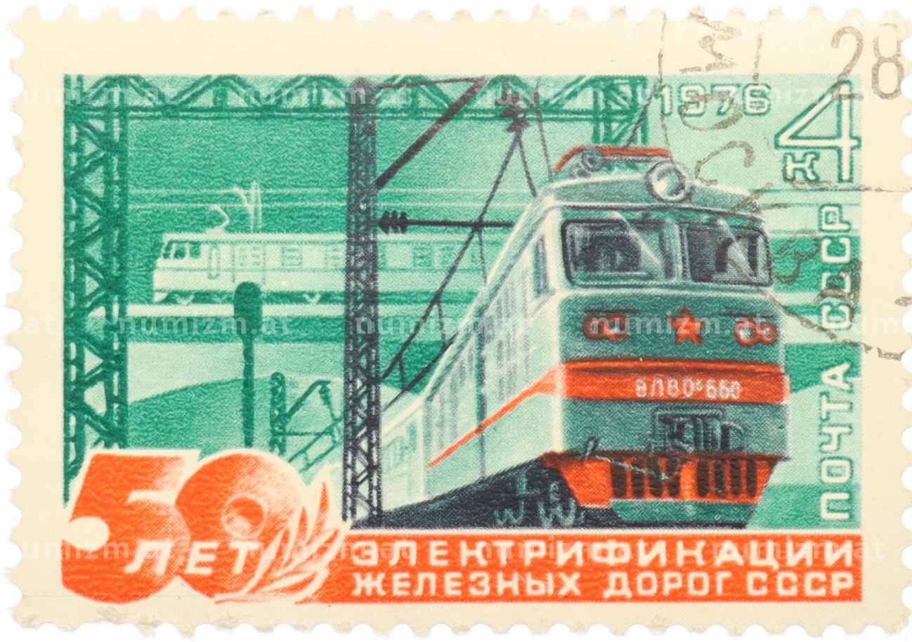 Купить Почтовая марка 4 копейки 1976 года «50 лет электрификации железных дорог СССР» по привлекательной цене можно в нашем интернет-магазине — Вам достаточно оформить заказ на сайте. Все монеты, представленные в каталоге, находятся в наличии на нашем складе.