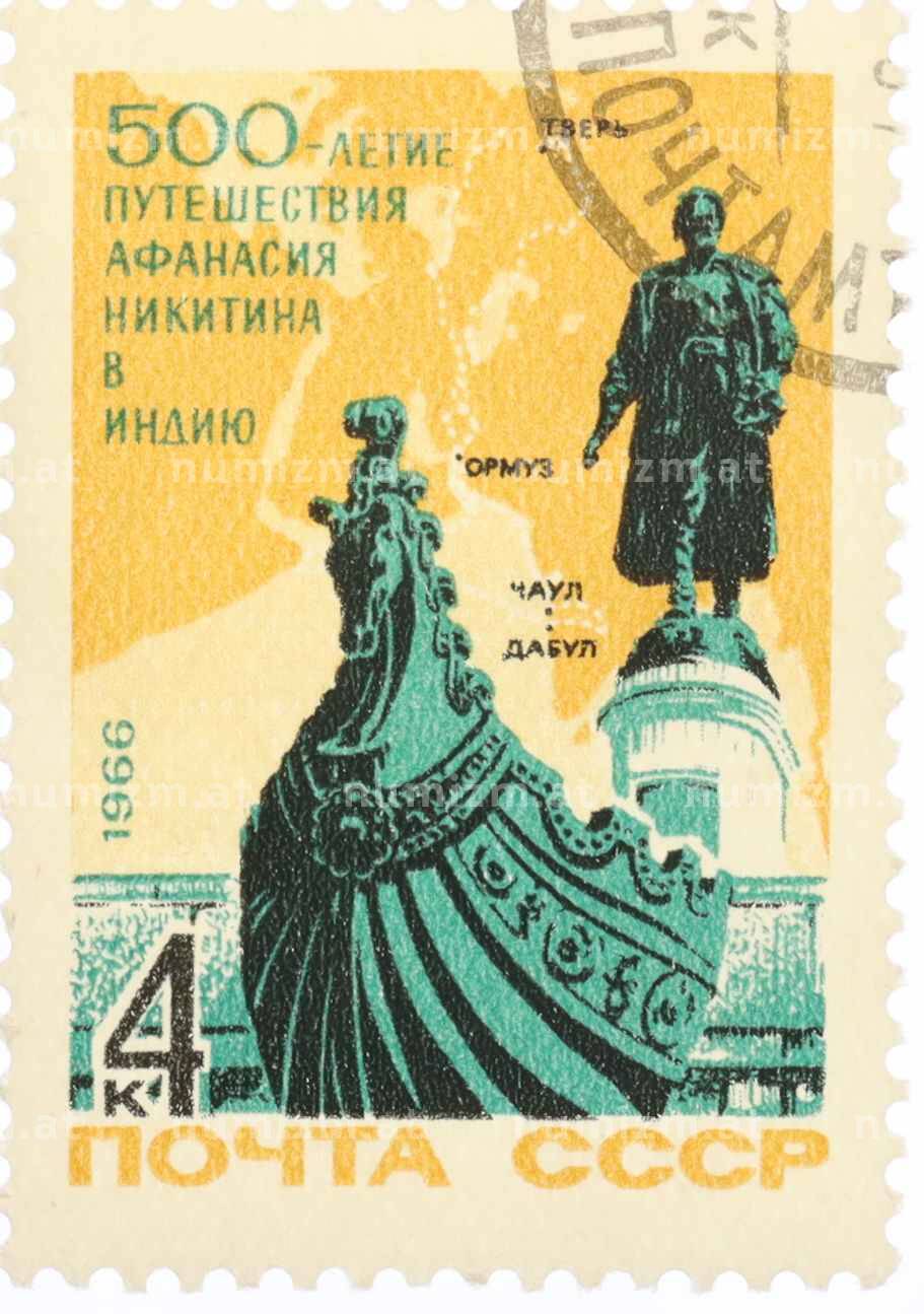 Купить Почтовая марка 4 копейки 1966 года «500 лет с начала путешествия тверского купца Афанасия Никитина в Индию» по привлекательной цене можно в нашем интернет-магазине — Вам достаточно оформить заказ на сайте. Все монеты, представленные в каталоге, находятся в наличии на нашем складе.