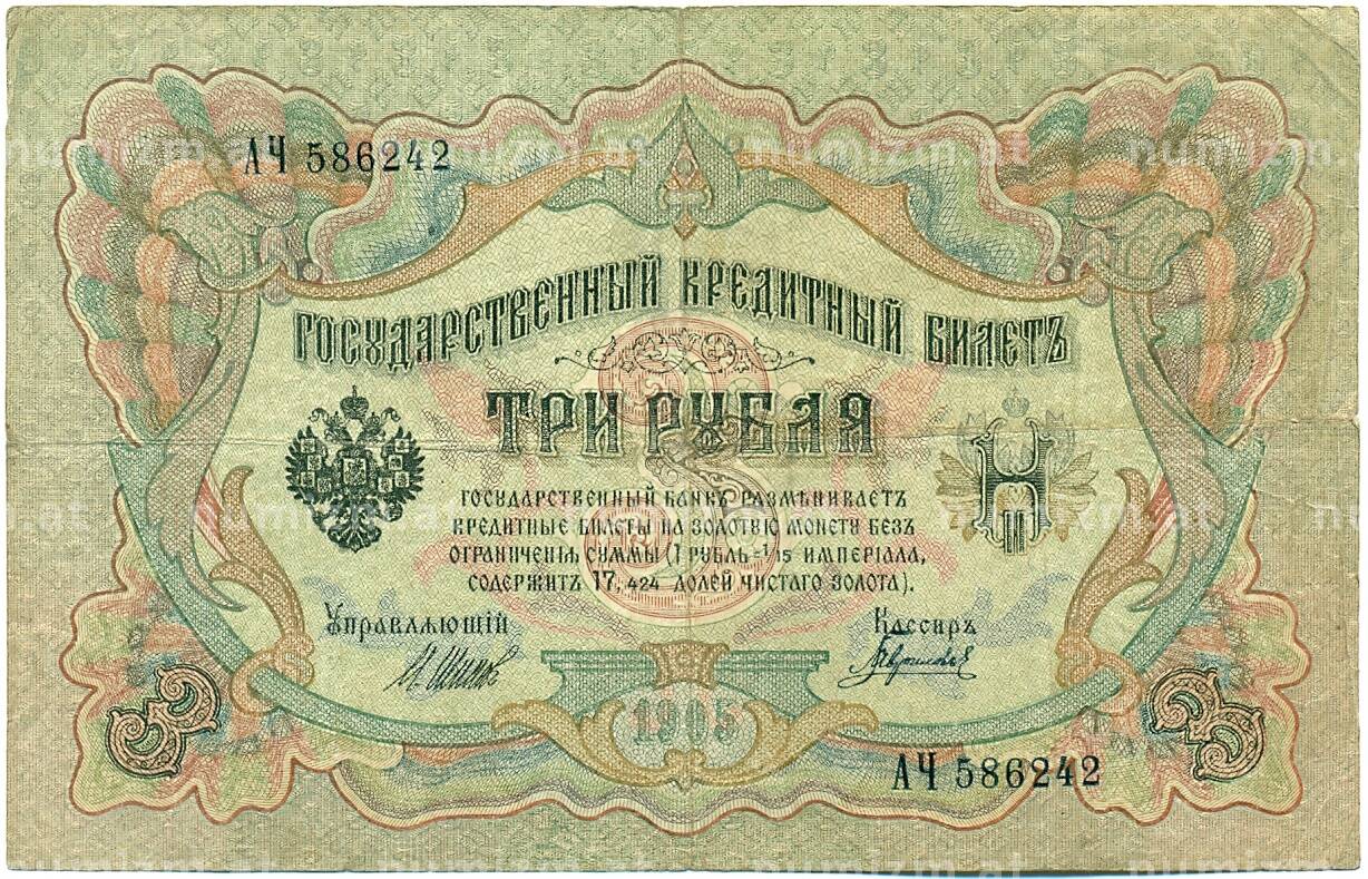 20.01.2025Интернет магазин «Нумизмат» предлагает приобрести 3 рубля 1905 года Шипов / Гаврилов.