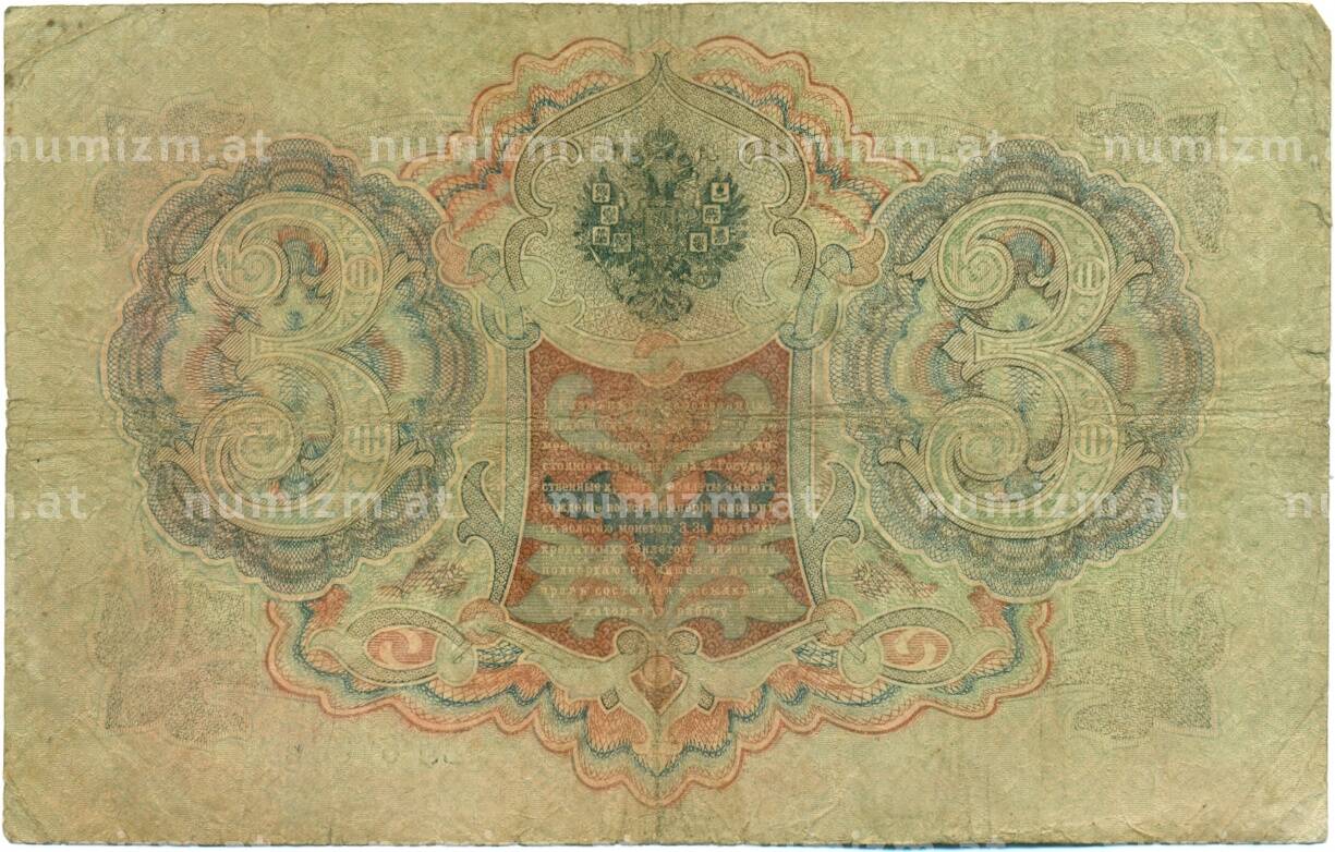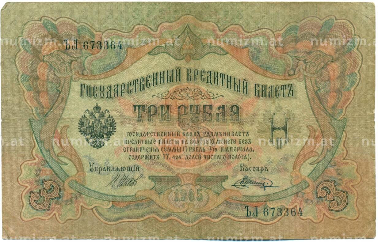 Банкнота 3 рубля 1905 года Шипов / Шагин (Артикул: K10-7900): подробные характеристики, качественные фотографии в высоком разрешении, низкая цена.