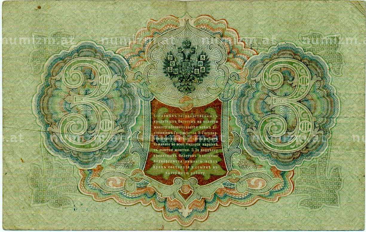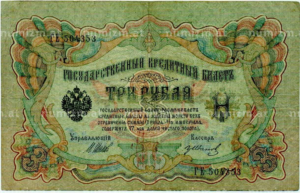 Банкнота 3 рубля 1905 года Шипов / Иванов (Артикул: K10-8041): подробные характеристики, качественные фотографии в высоком разрешении, низкая цена.