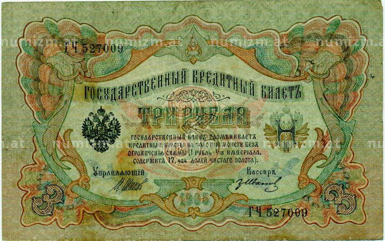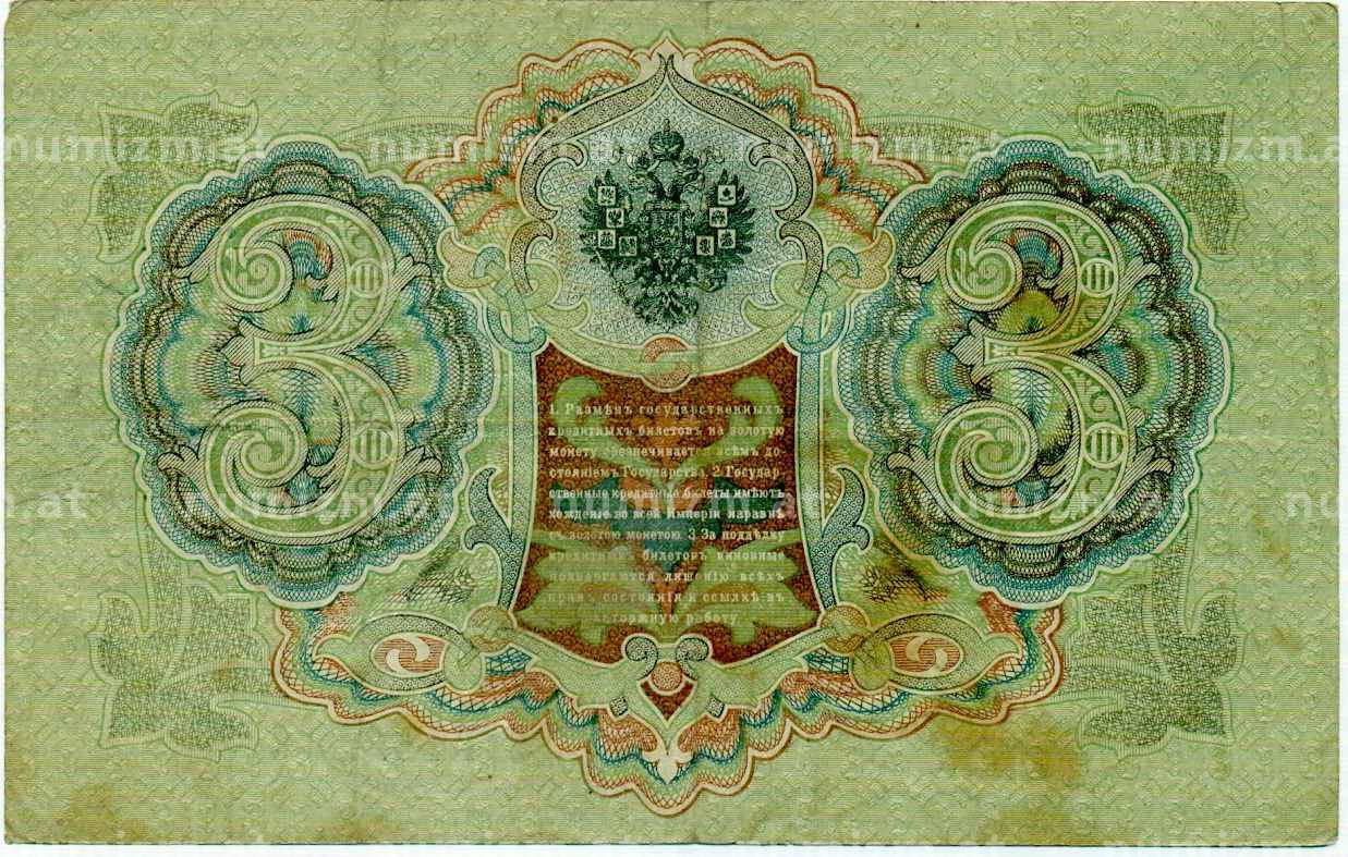 Банкнота 3 рубля 1905 года Шипов / Иванов (Артикул: K10-8042): подробные характеристики, качественные фотографии в высоком разрешении, низкая цена.