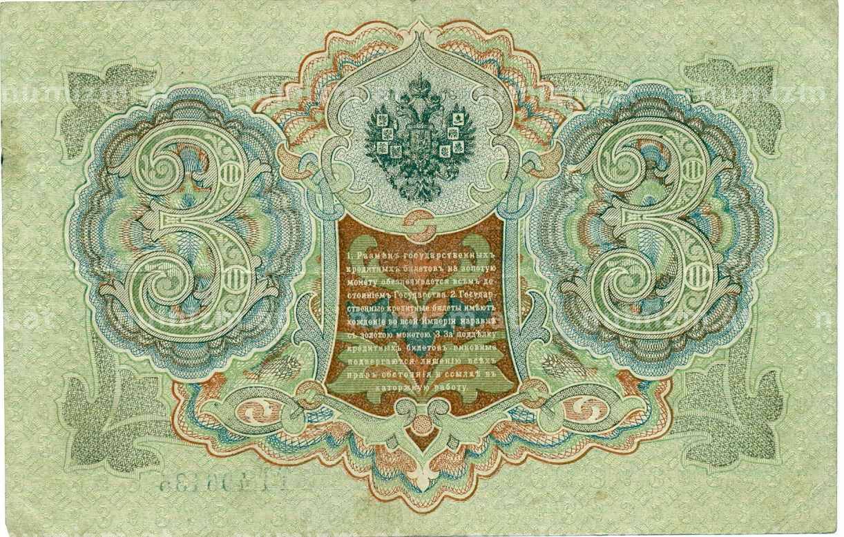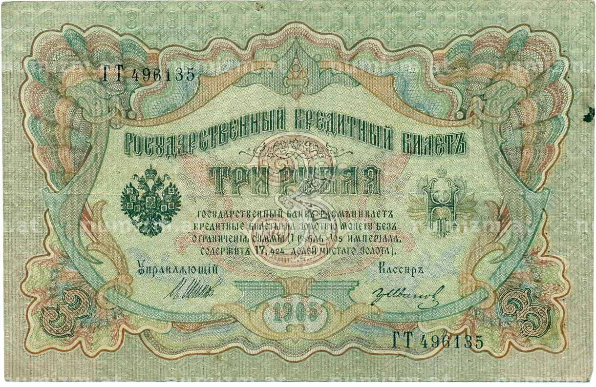 Банкнота 3 рубля 1905 года Шипов / Иванов (Артикул: K10-8060): подробные характеристики, качественные фотографии в высоком разрешении, низкая цена.