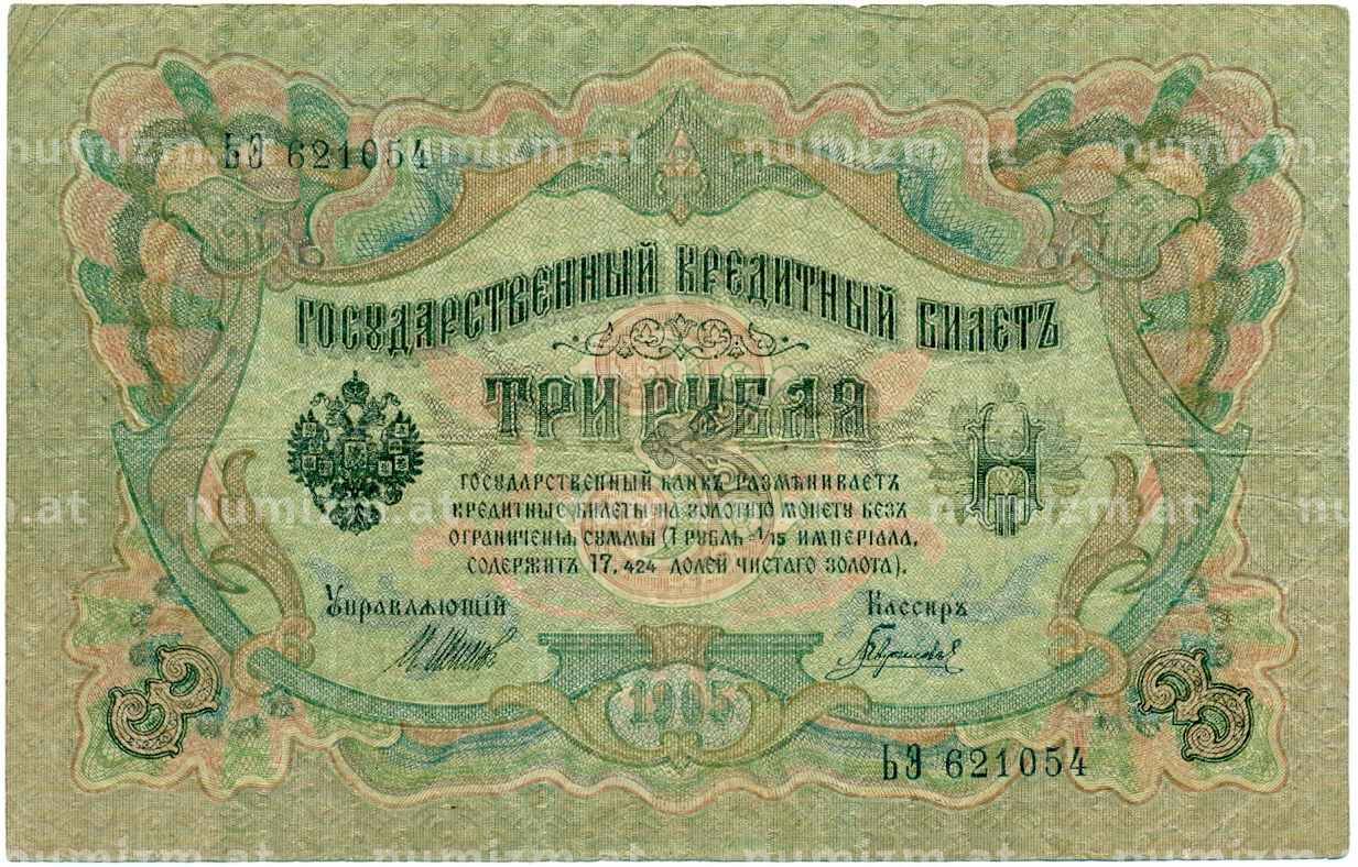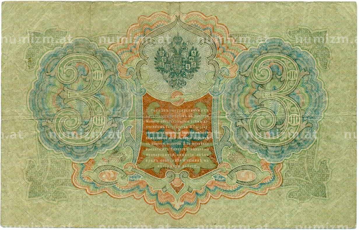 Банкнота 3 рубля 1905 года Шипов / Гаврилов (Артикул: K10-8068): подробные характеристики, качественные фотографии в высоком разрешении, низкая цена.