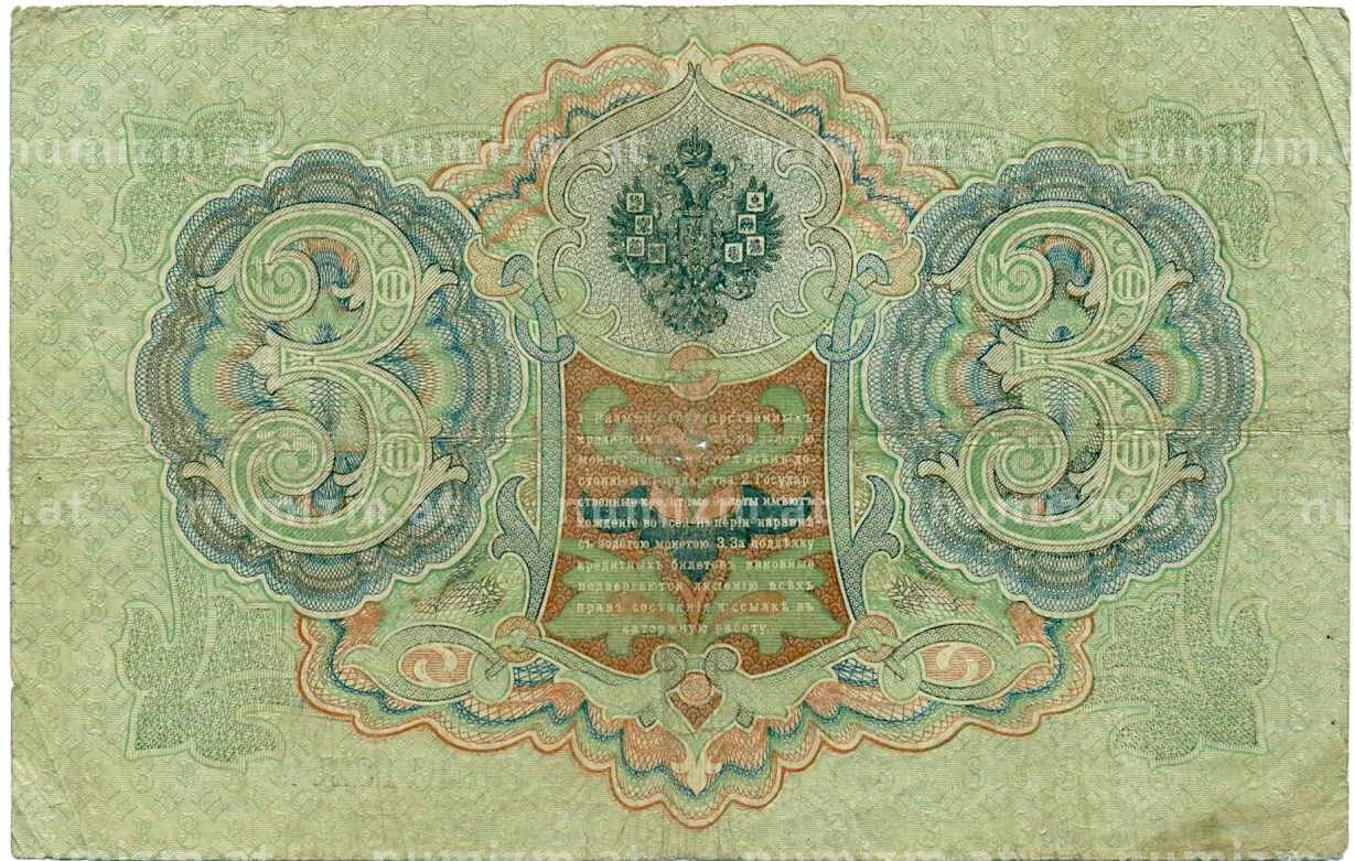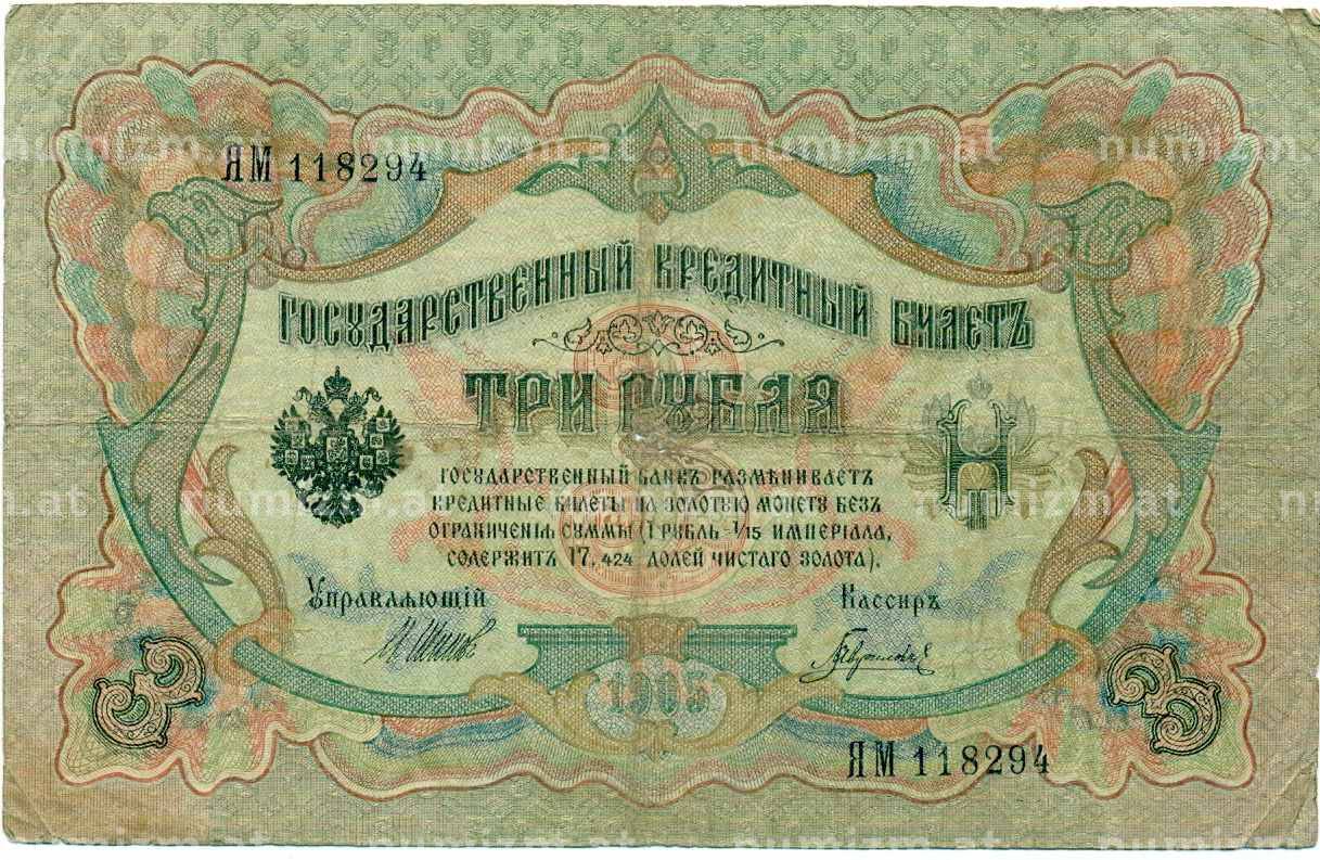 Банкнота 3 рубля 1905 года Шипов / Гаврилов (Артикул: K10-8070): подробные характеристики, качественные фотографии в высоком разрешении, низкая цена.