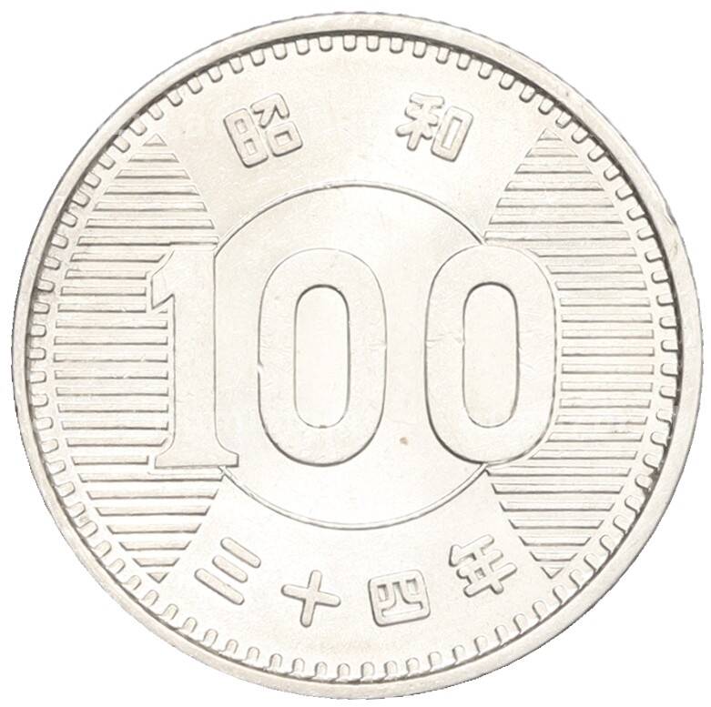 Монета 100 йен 1959 года Япония (Артикул: K10-8271): подробные характеристики, качественные фотографии в высоком разрешении, низкая цена.