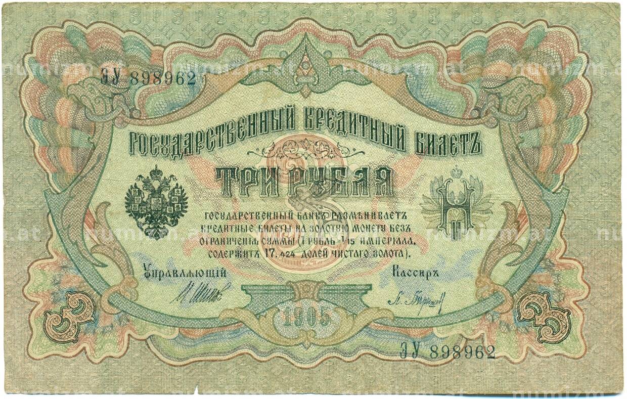 20.01.2025Интернет магазин «Нумизмат» предлагает приобрести 3 рубля 1905 года Шипов / Барышев.
