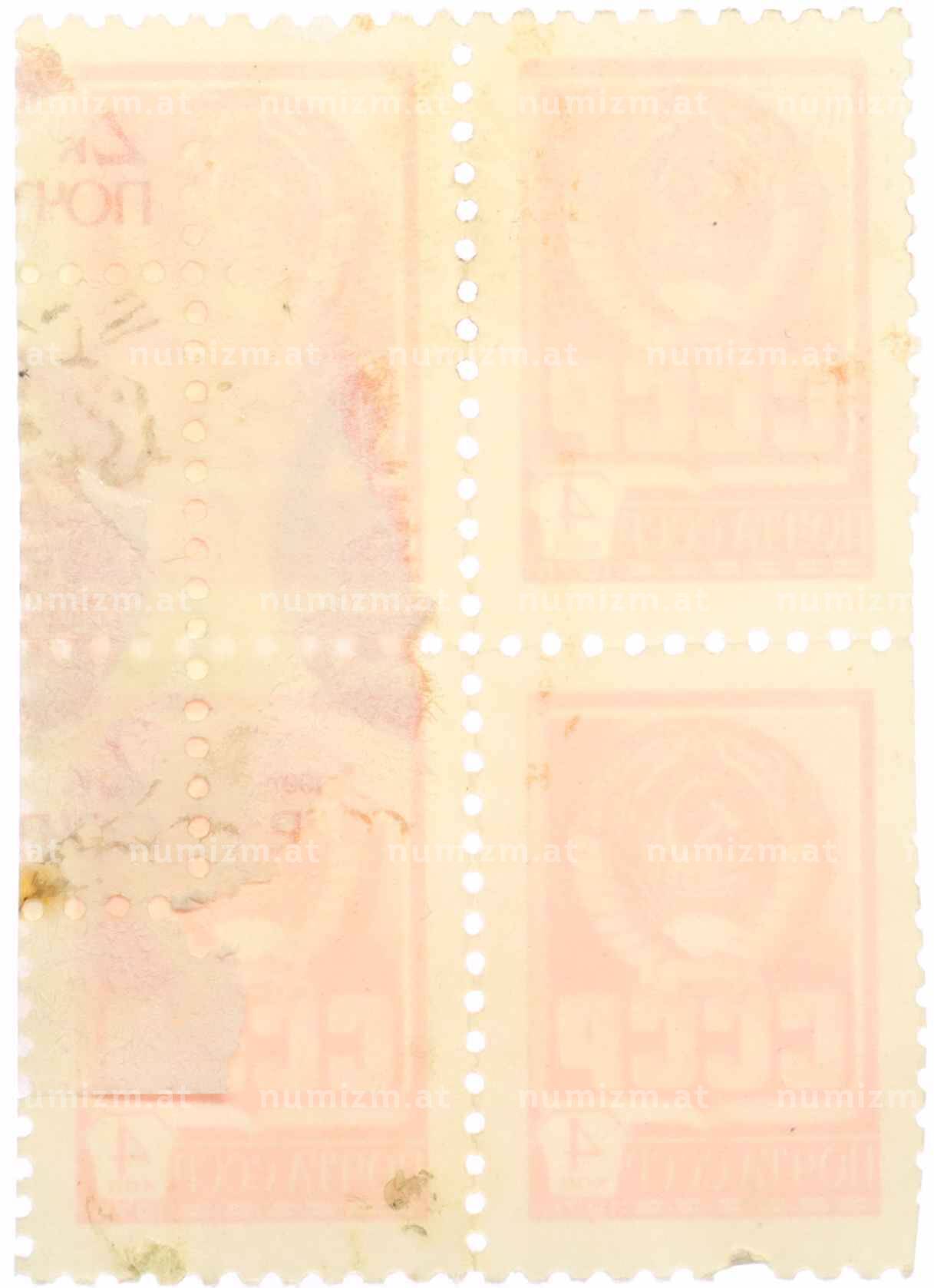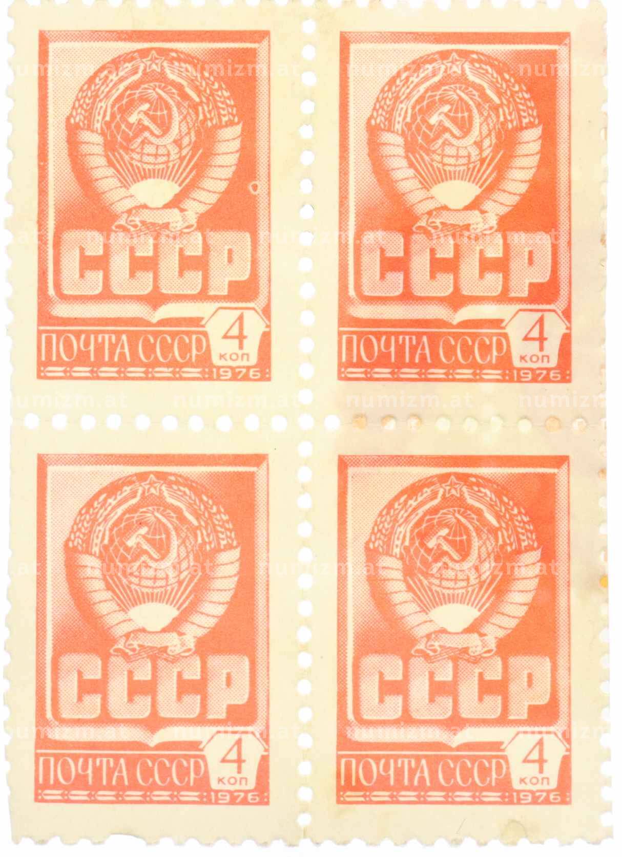Сцепка из 4 марок 4 копейки 1976 года «Стандартный выпуск — Государственный герб СССР» (Артикул: K10-8721): подробные характеристики, качественные фотографии в высоком разрешении, низкая цена.