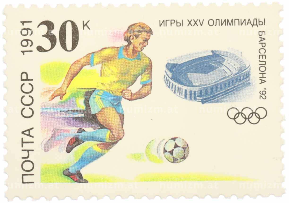 Купить Почтовая марка 30 копеек 1991 года «К XXV Олимпийским играм — Игровые виды спорта» по привлекательной цене можно в нашем интернет-магазине — Вам достаточно оформить заказ на сайте. Все монеты, представленные в каталоге, находятся в наличии на нашем складе.