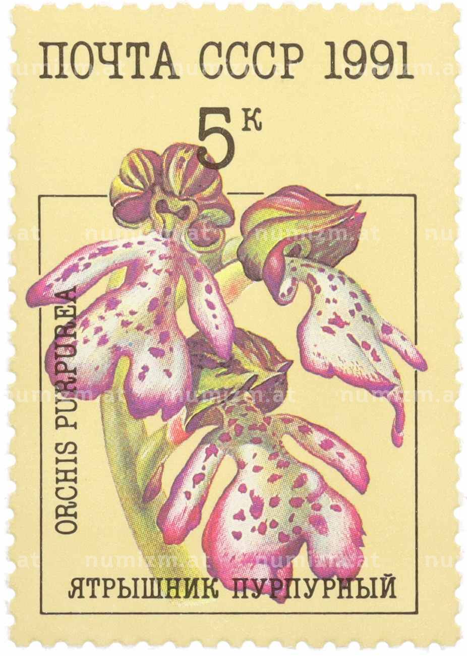 Купить Почтовая марка 5 копеек 1991 года «Орхидеи — Ятрышник пурпурный» по привлекательной цене можно в нашем интернет-магазине — Вам достаточно оформить заказ на сайте. Все монеты, представленные в каталоге, находятся в наличии на нашем складе.