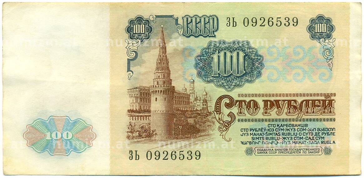 Банкнота 100 рублей 1991 года (Артикул: K10-8946): подробные характеристики, качественные фотографии в высоком разрешении, низкая цена.