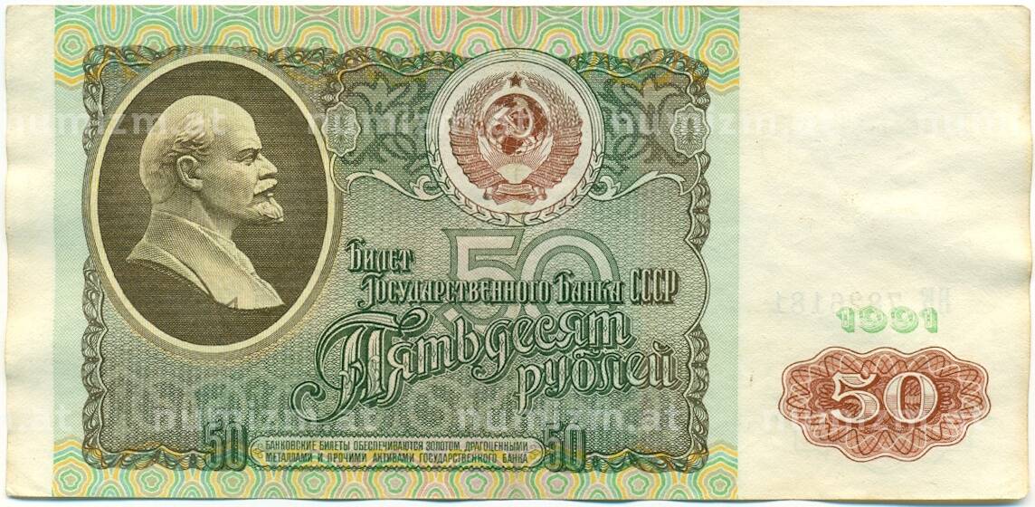 • Банкнота 50 рублей 1991 года (Артикул: K10-8961) — Фото №1 Банкнота 50 рублей 1991 года (Артикул: K10-8961) — Фото №2