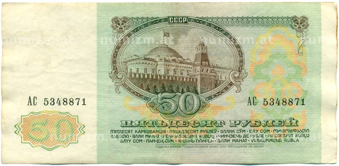 Банкнота 50 рублей 1991 года (Артикул: K10-8966): подробные характеристики, качественные фотографии в высоком разрешении, низкая цена.