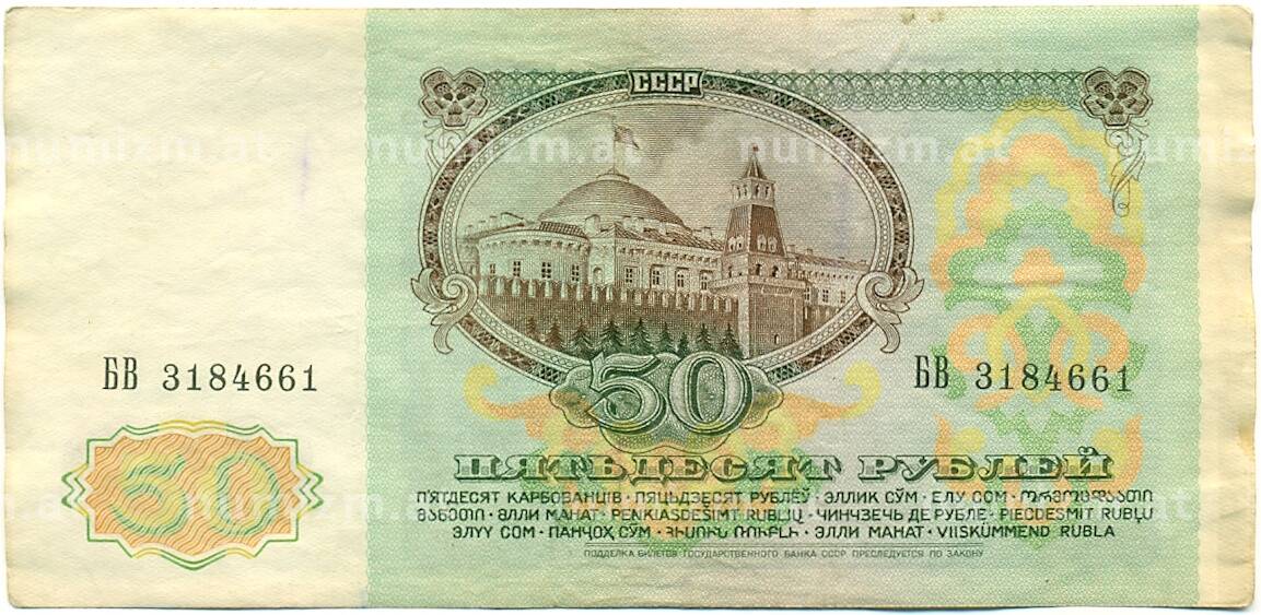 Банкнота 50 рублей 1991 года (Артикул: K10-8967): подробные характеристики, качественные фотографии в высоком разрешении, низкая цена.