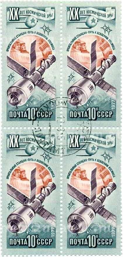 20.01.2025Интернет магазин «Нумизмат» предлагает приобрести Сцепка из 4 марок 10 копеек 1977 года «20 лет космической эры — Космические исследования».