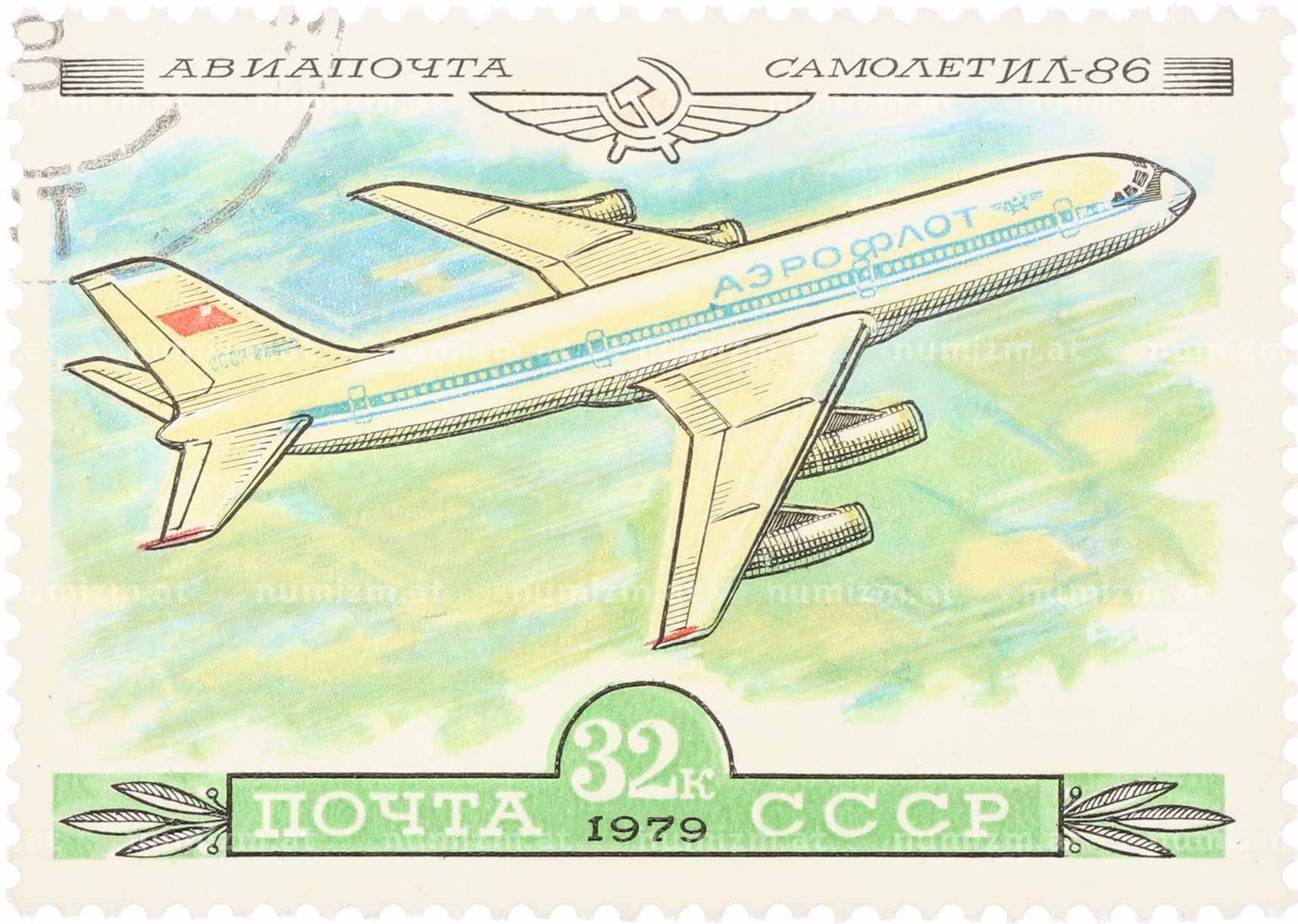 Почтовая марка 32 копейки 1979 года «История отечественного авиастроения — Ил-86» (Артикул: K10-8998): подробные характеристики, качественные фотографии в высоком разрешении, низкая цена.