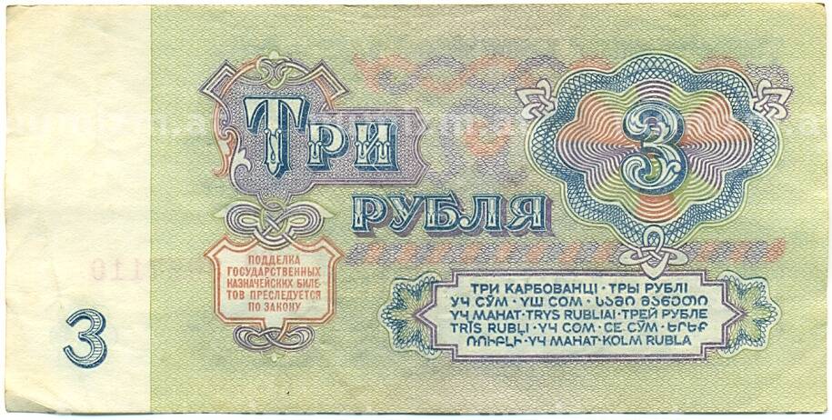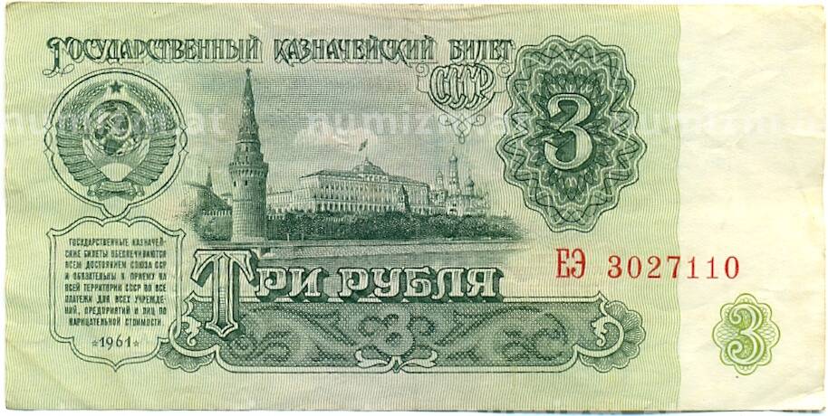 Банкнота 3 рубля 1961 года (Артикул: K10-9183): подробные характеристики, качественные фотографии в высоком разрешении, низкая цена.