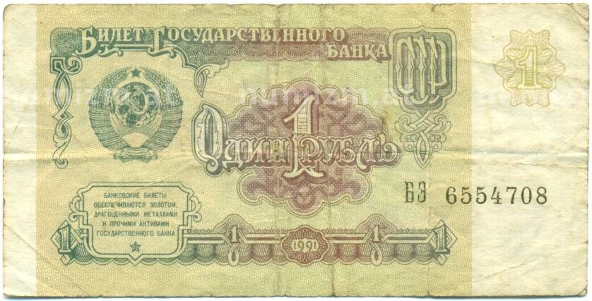 Банкнота 1 рубль 1991 года (Артикул: K10-9199): подробные характеристики, качественные фотографии в высоком разрешении, низкая цена.