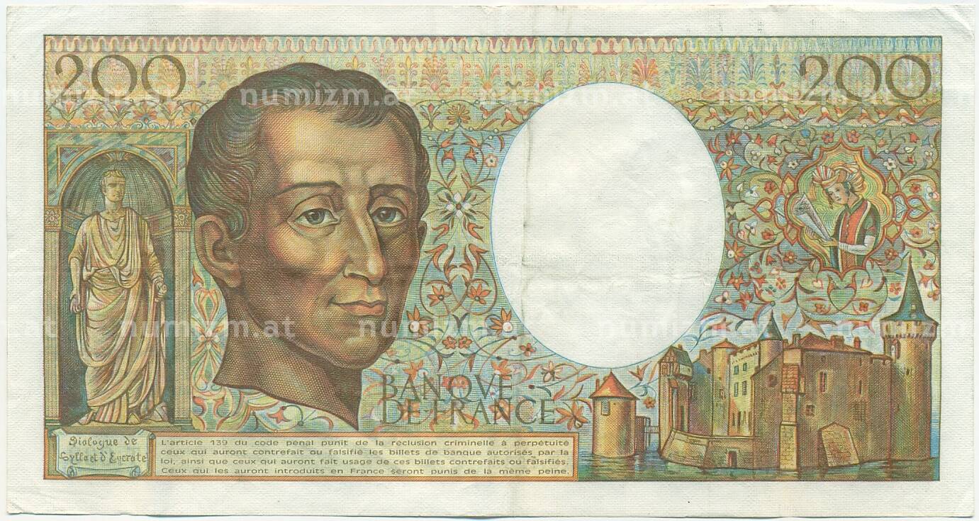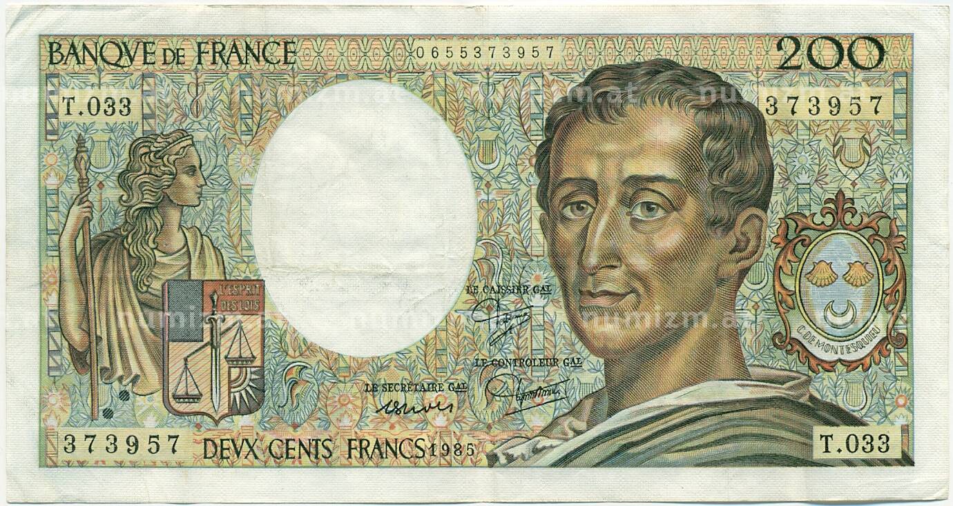 Банкнота 200 франков 1985 года Франция (Артикул: K10-9363): подробные характеристики, качественные фотографии в высоком разрешении, низкая цена.