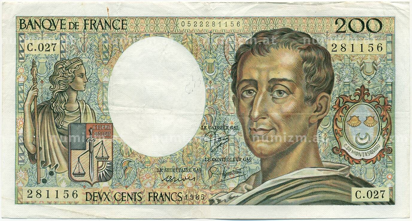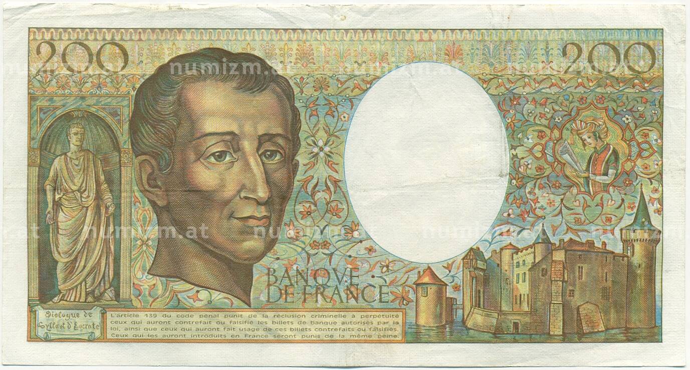 Банкнота 200 франков 1985 года Франция (Артикул: K10-9384): подробные характеристики, качественные фотографии в высоком разрешении, низкая цена.