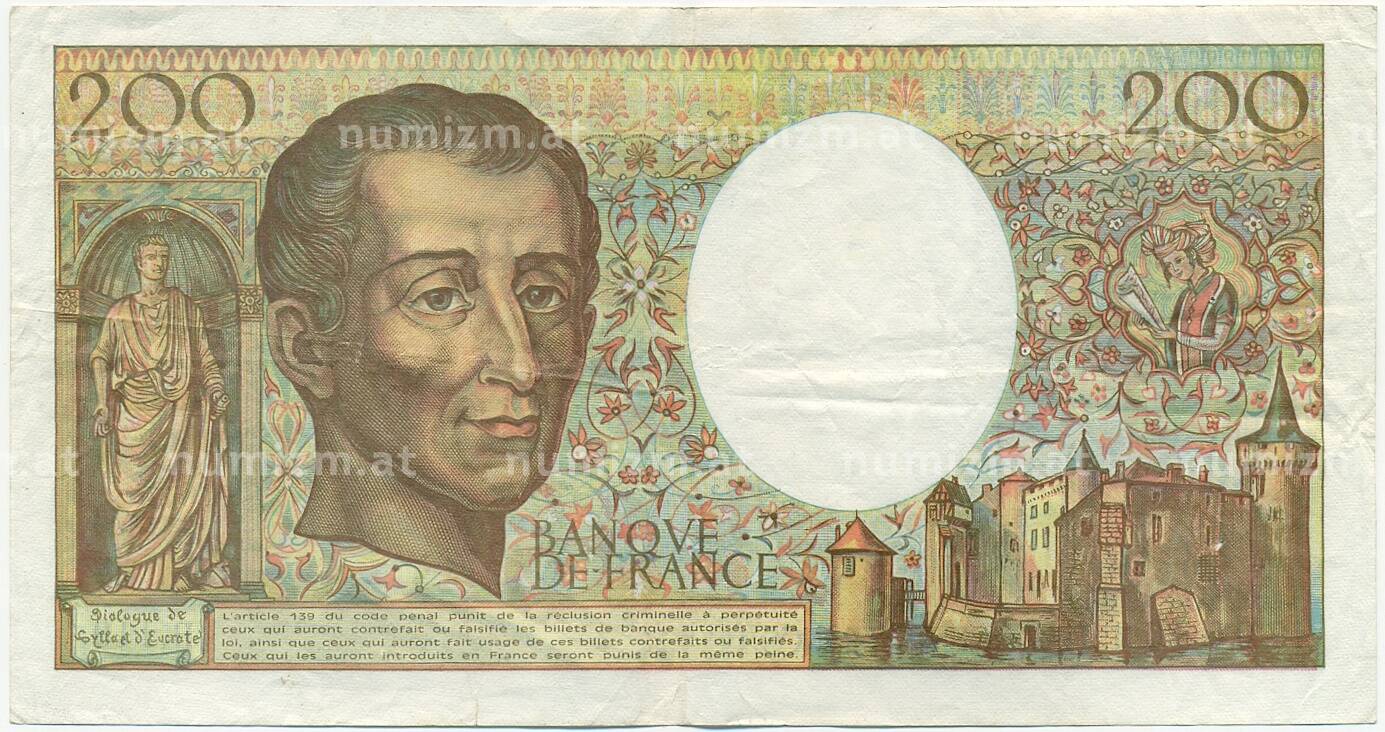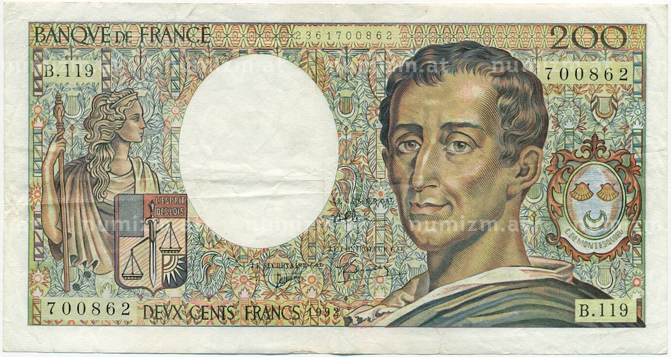 Банкнота 200 франков 1992 года Франция (Артикул: K10-9398): подробные характеристики, качественные фотографии в высоком разрешении, низкая цена.
