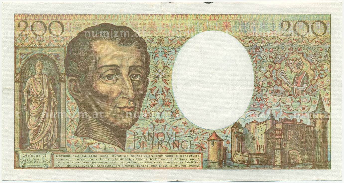 Банкнота 200 франков 1992 года Франция (Артикул: K10-9406): подробные характеристики, качественные фотографии в высоком разрешении, низкая цена.