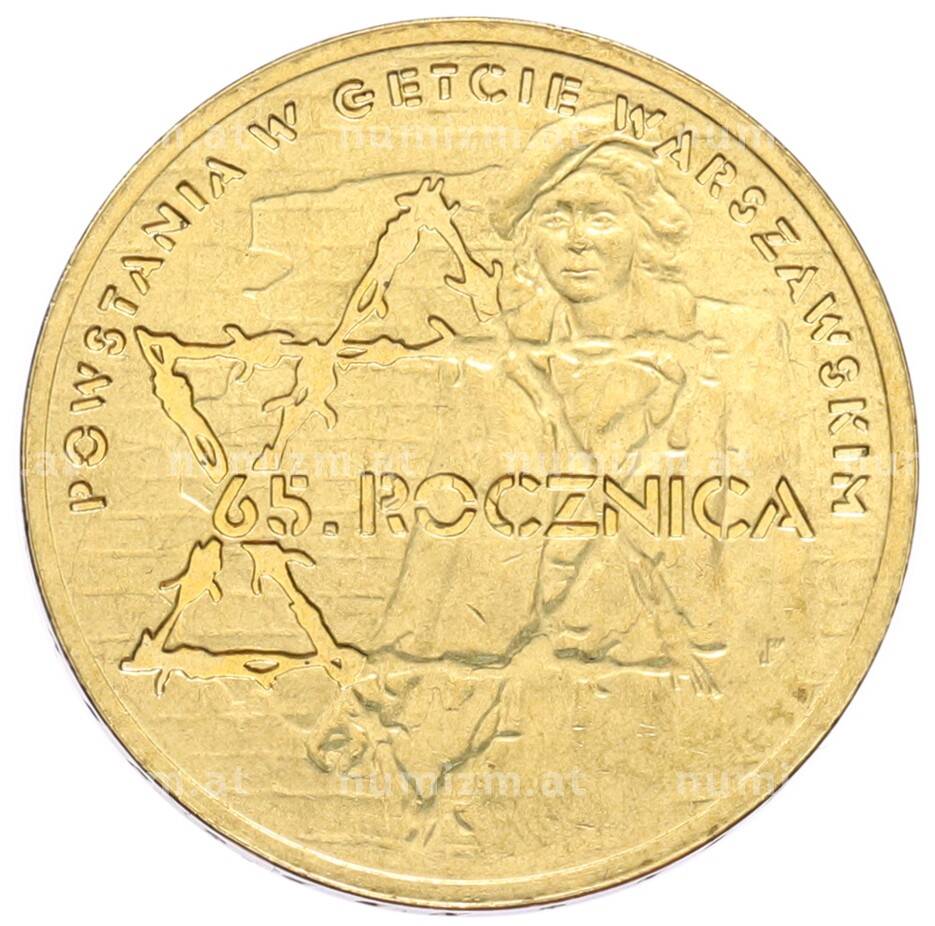 • Монета 2 злотых 2008 года Польша «65 лет восстанию в Варшавском гетто» (Артикул: K10-9585) — Фото №1 Монета 2 злотых 2008 года Польша «65 лет восстанию в Варшавском гетто» (Артикул: K10-9585) — Фото №2