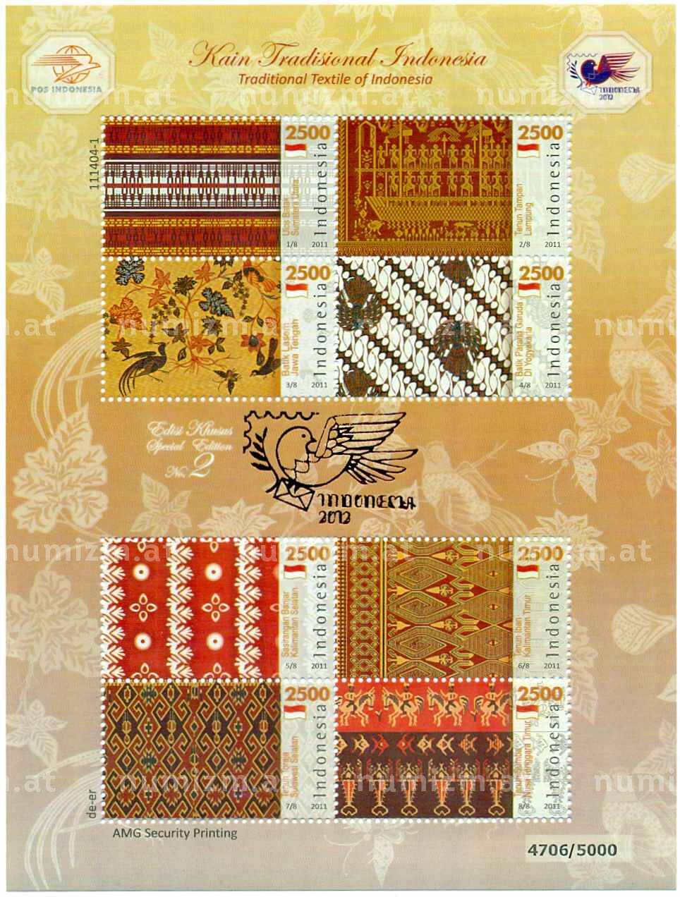 Купить Полная серия марок 2011 года Индонезия «Традиционный текстиль Индонезии» на листе (Выпуск 2) по привлекательной цене можно в нашем интернет-магазине — Вам достаточно оформить заказ на сайте. Все монеты, представленные в каталоге, находятся в наличии на нашем складе.